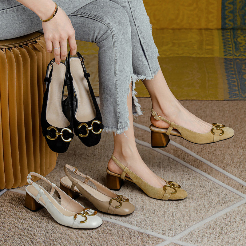 A pair of trendy slingbacks that are stylish and comfortable. Handmade with love from real leather. Allie chunky low heels are the best you can get for under $200.