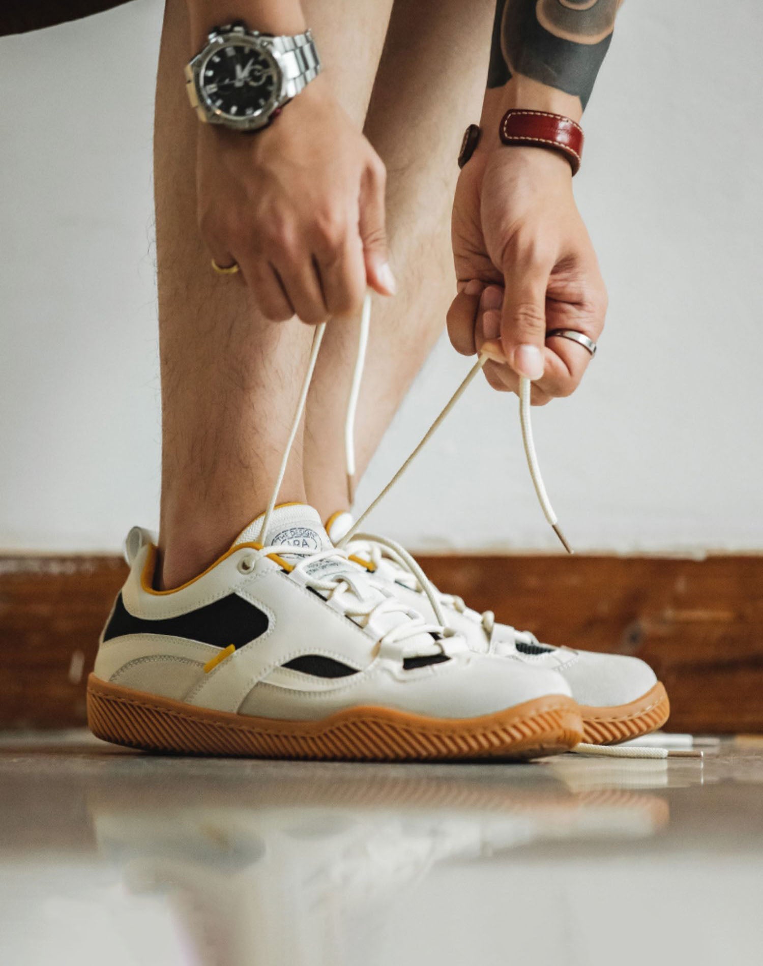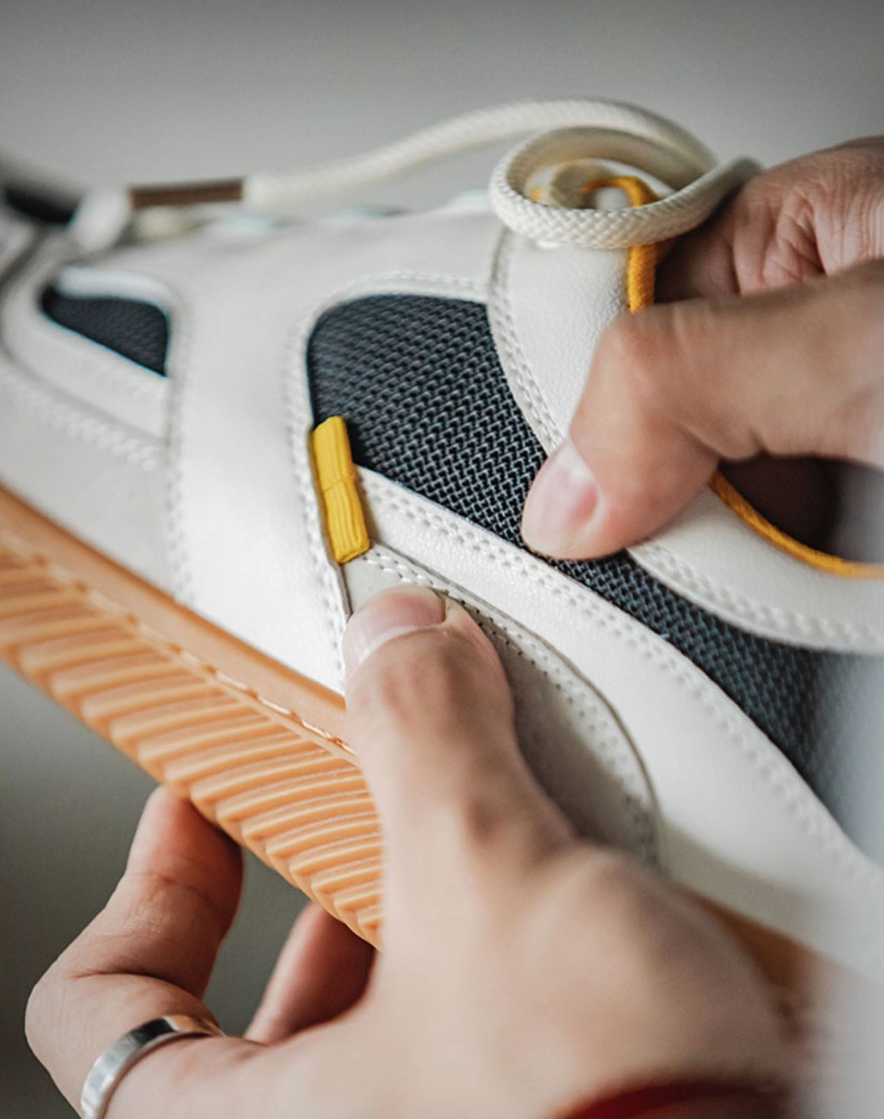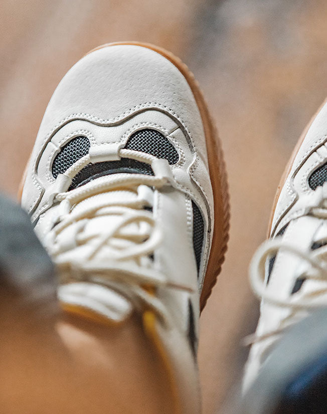 Inside. the cloth insole and mesh material take care of your feet like a cool breeze on a hot day. The mixed material on the upper? That's just the icing on the cake that gives you that extra style punch.
