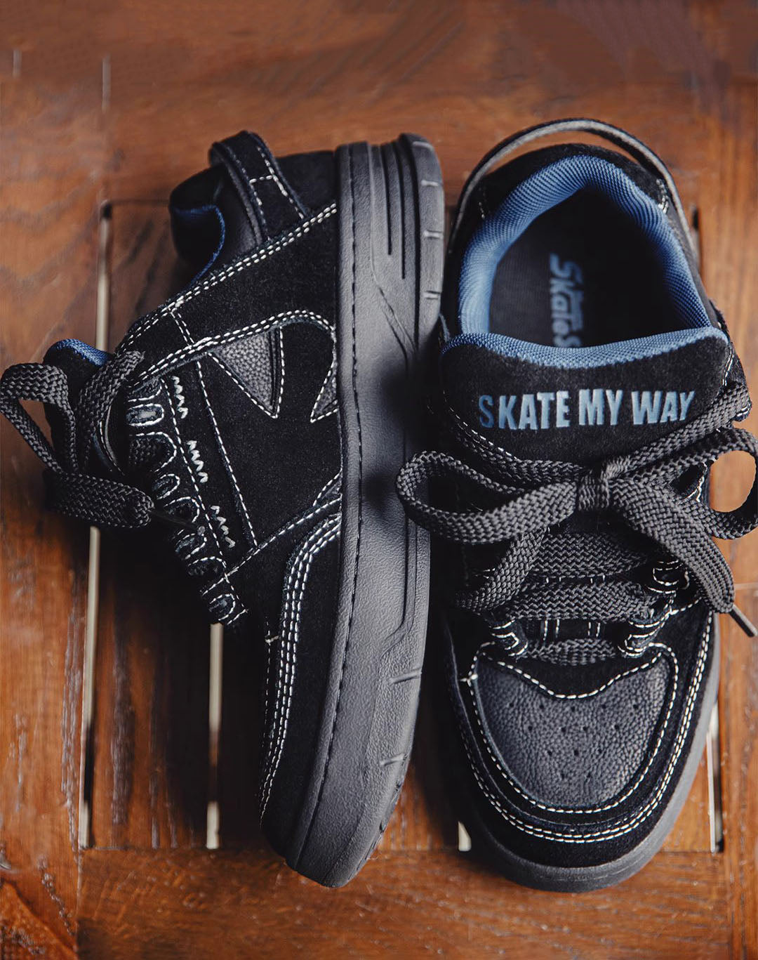 👟 Style meets comfort: With a trendy casual style and a sleek color block pattern in black and blue. these shoes are not just for skating. They're perfect for any occasion. adding a touch of cool to your outfit.