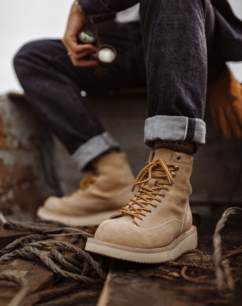 Introducing our American Retro Winter Desert Suede Logging Men's Work Boot! Gear up for any rugged task with these boots designed to provide exceptional comfort and durability.