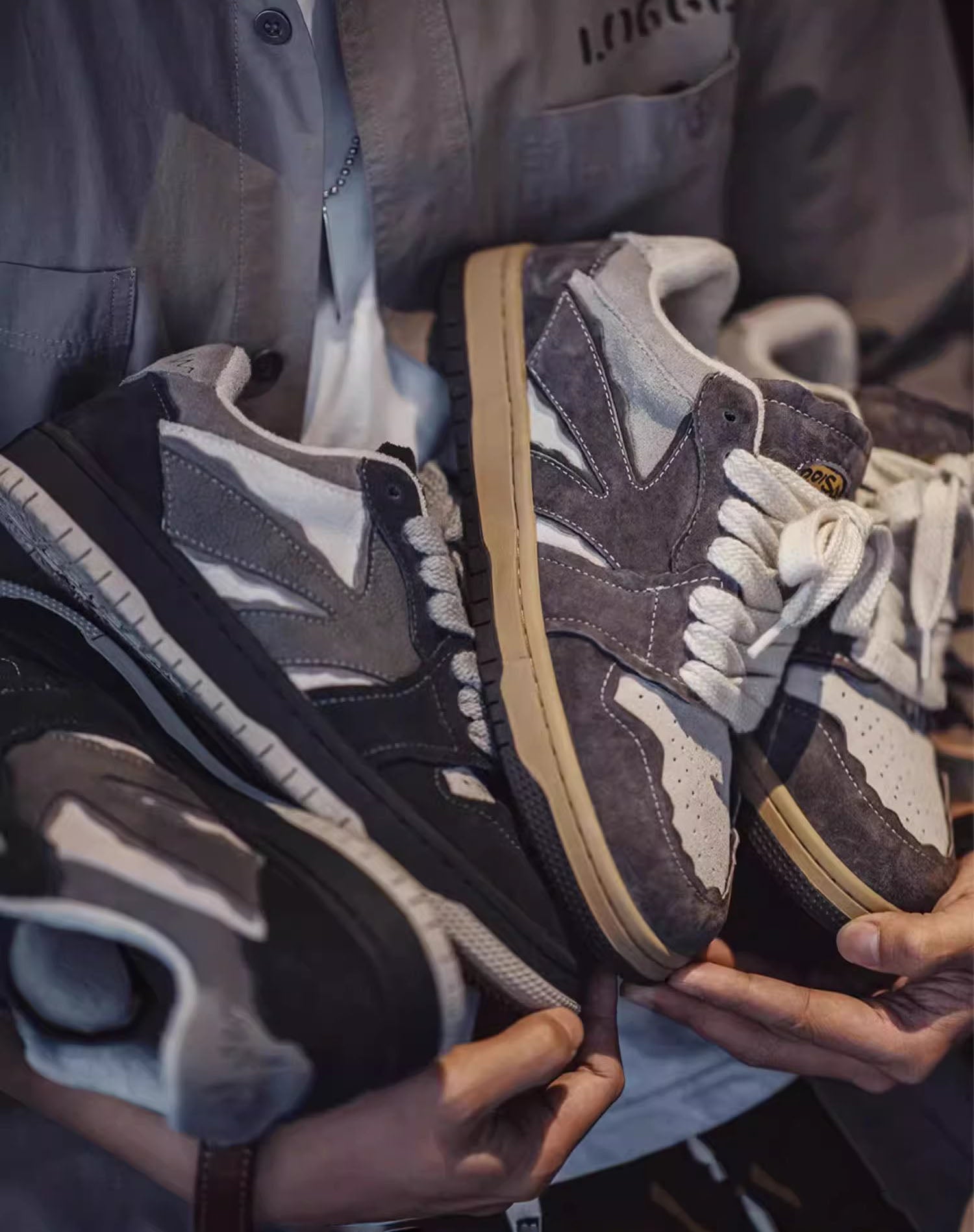 Rocking a vibrant color block design in cool shades of brown and gray. these shoes stand out in a crowd. making a bold statement wherever you go. The lace-up closure ensures a snug and secure fit. keeping you comfortable whether you're skating downtown or just hanging out.