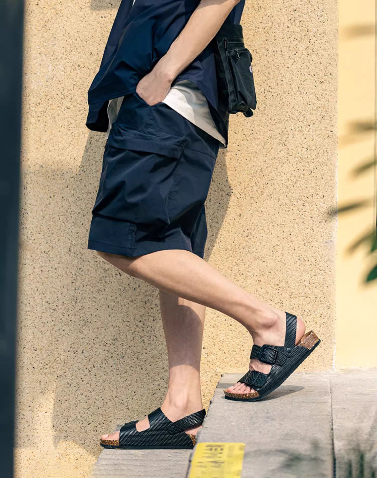 Available in sleek black glossy and black woven finishes. these slippers offer a look that's effortlessly cool. They're perfect for any setting. matching easily with swim trunks or casual shorts. The super fiber leather upper not only looks great but also provides outstanding durability and comfort. making it ideal for your summer adventures.
