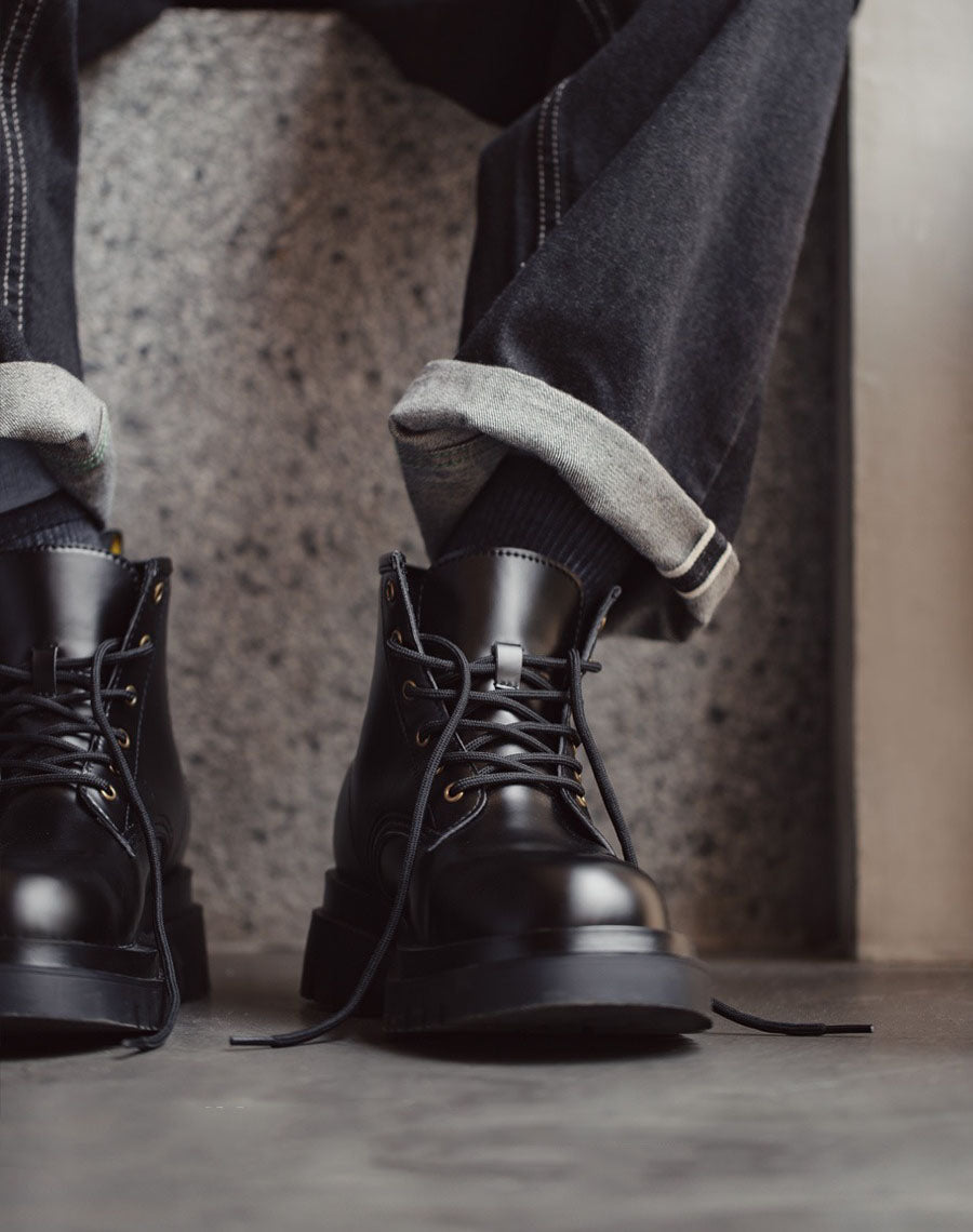 Our British Style Leather Thick-Soled Tooling Derby Martin Men's Boots offer more than just style. The low heel height and round head-toe style ensure all-day comfort. allowing your feet to breathe and move freely. The front lace closure not only adds a touch of sophistication but also allows for a customized and secure fit.