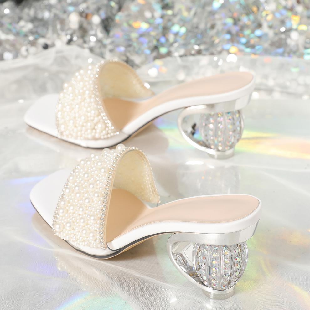 ❤️Women's Platform Sandals Fish Mouth Open Toe Back Strap EVA Sequins Pearl Rhinestone Beach Ladies Flat Thong Gladiator Square Strap Sandals Casual Summer Fashion Buckle Single Band