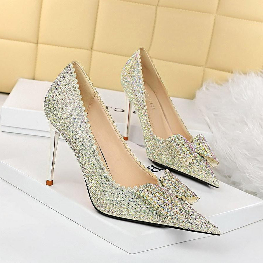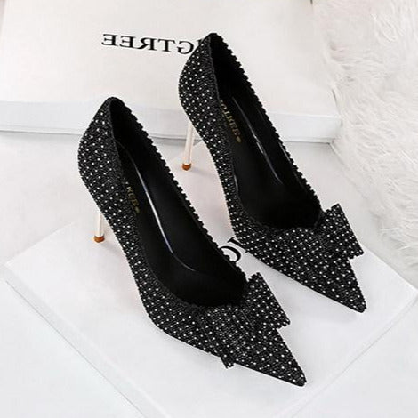 Bow Detail Sequin Decor Stiletto Heeled Pumps