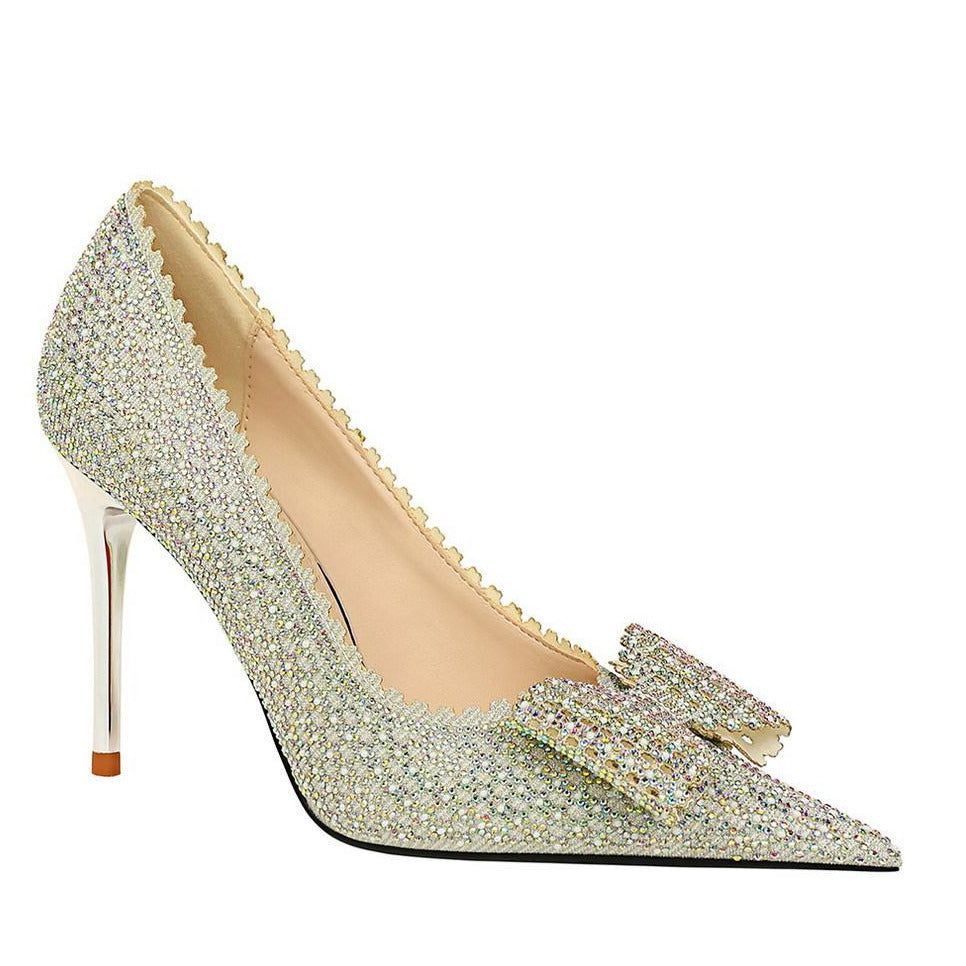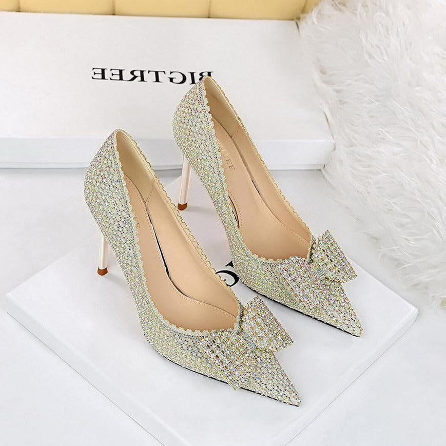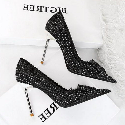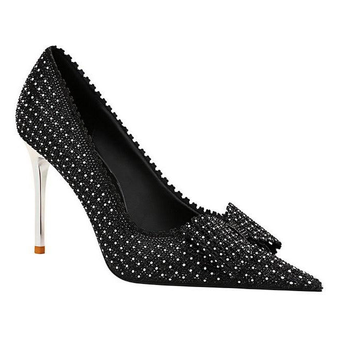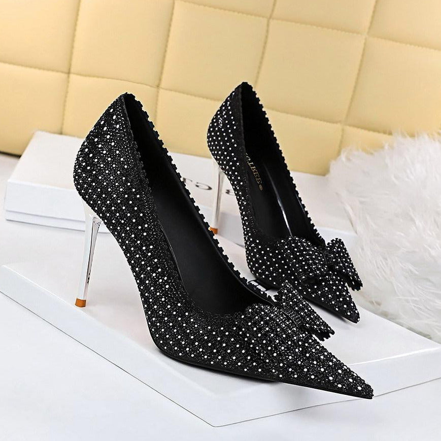 Bow Detail Sequin Decor Stiletto Heeled  Pumps