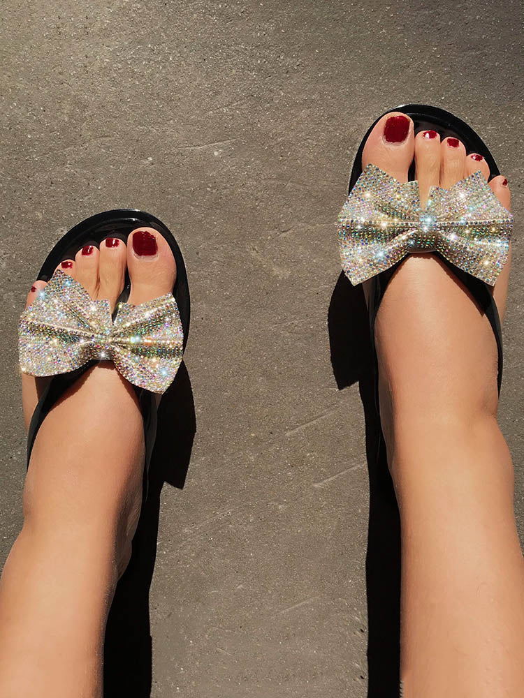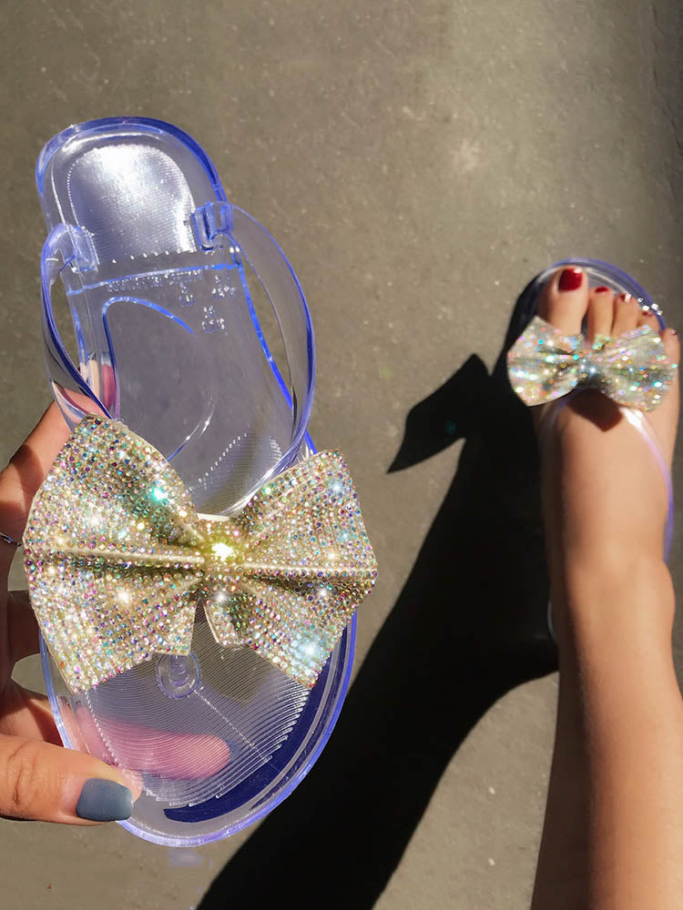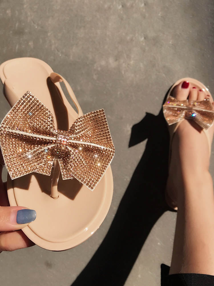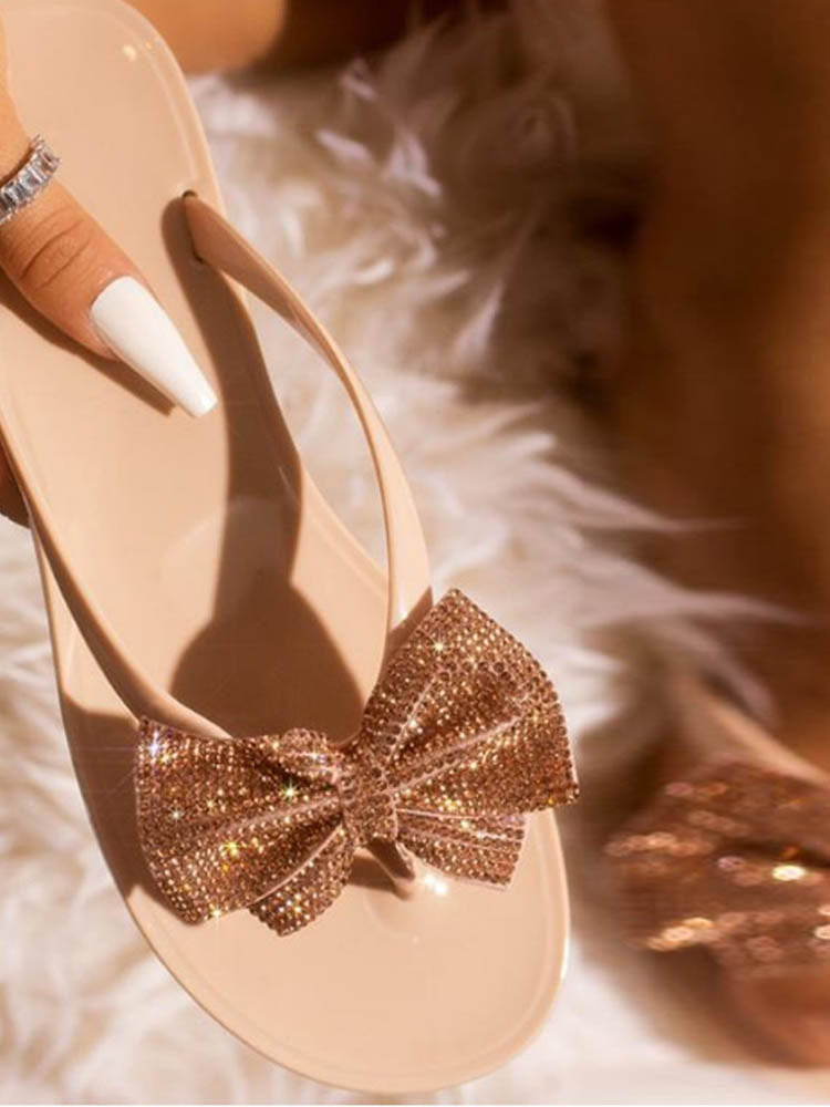 Bow Rhinestone Flip-Flops Sandals