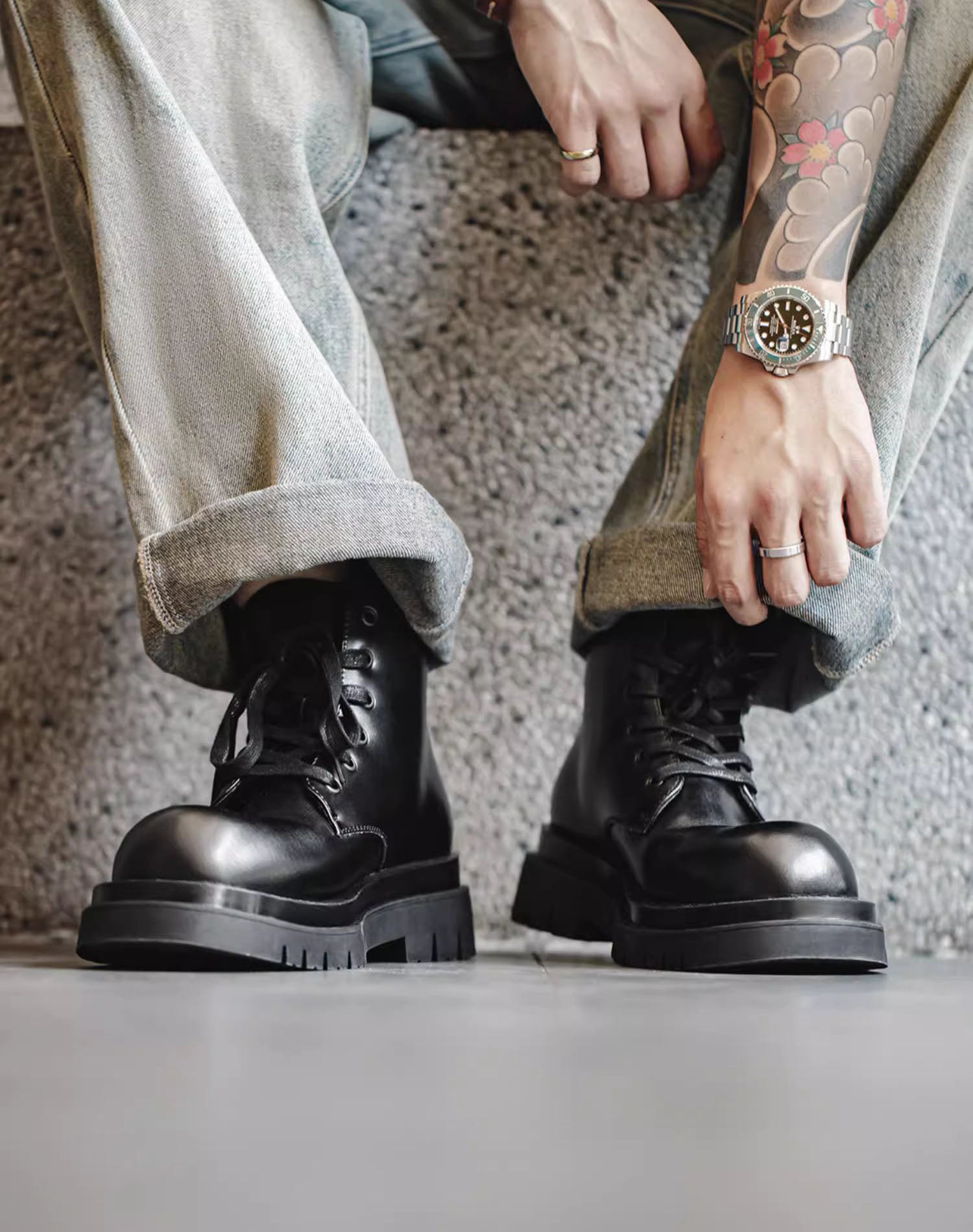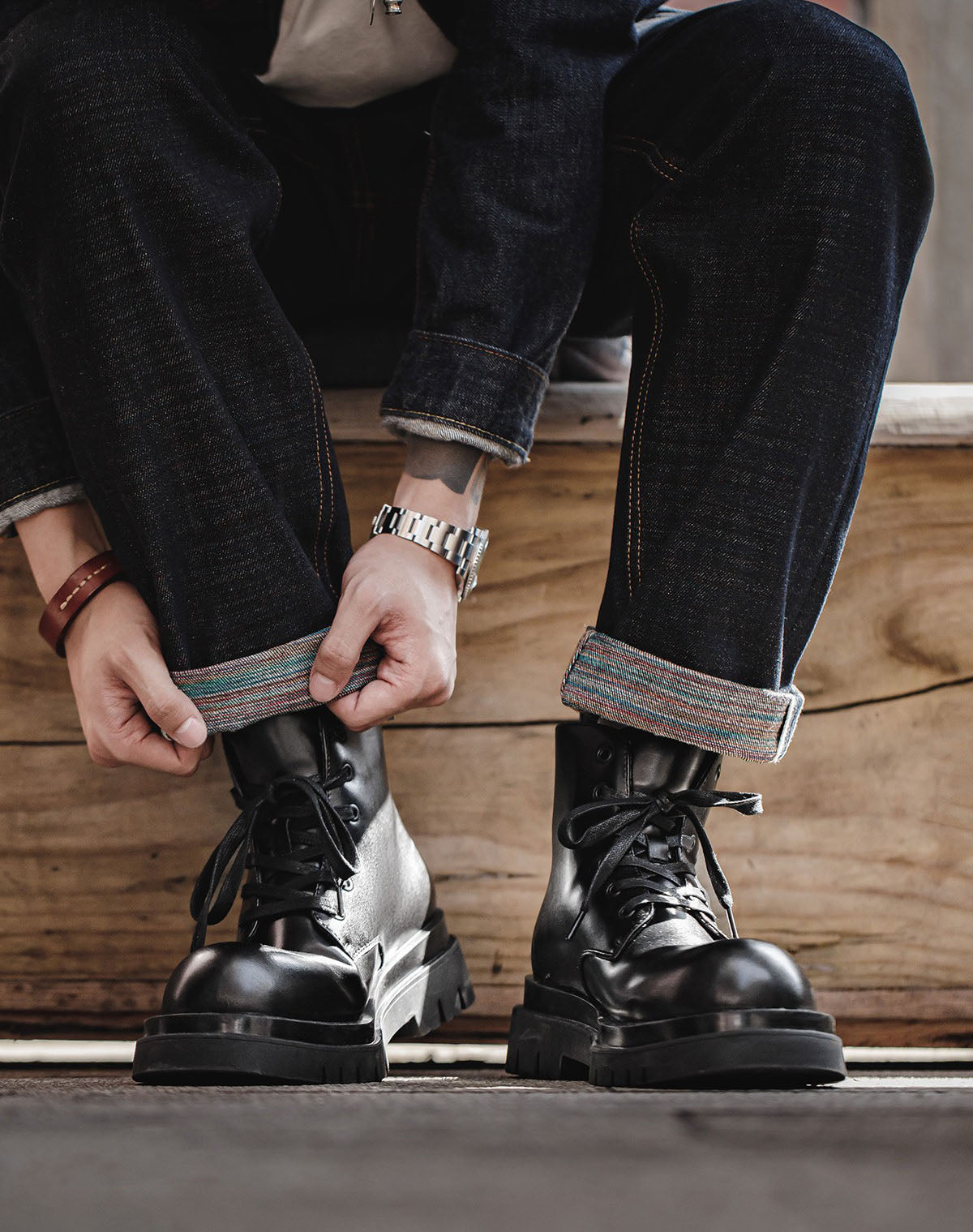 Introducing our British Workwear Leather Derby High-Top Unisex Thick-Soled Boot - the ultimate blend of style. comfort. and durability. These boots aren't just your average footwear; they're a game-changer for your daily adventures.