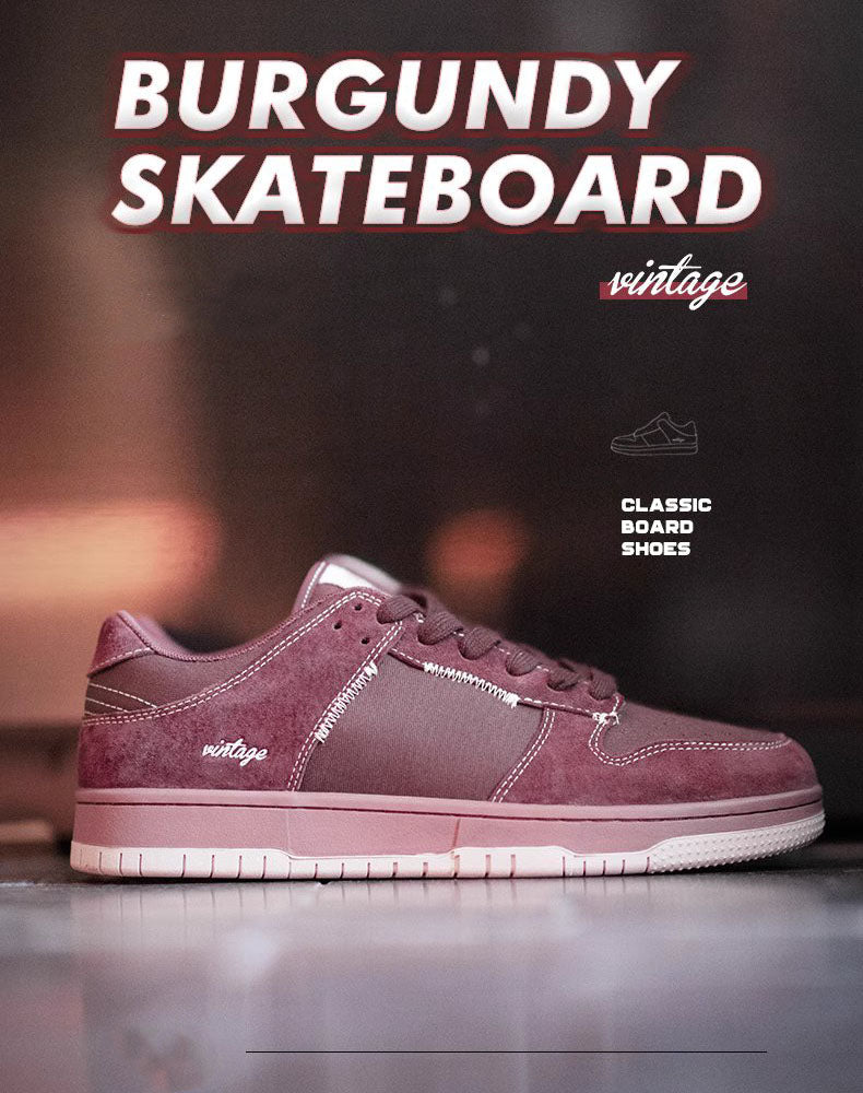 So why wait? Elevate your shoe game with our Burgundy Skateboard Embroidered Retro Sports Casual Shoes today! Whether you're a skater. a trendsetter. or just someone who loves a pop of color. these shoes are sure to become your new go-to. Grab yours now and step out in style!