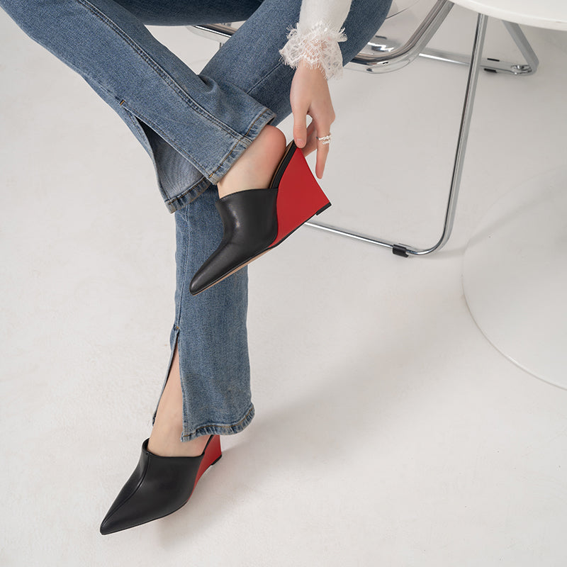 Calista Pointy Toe Wedge Heel Mules
