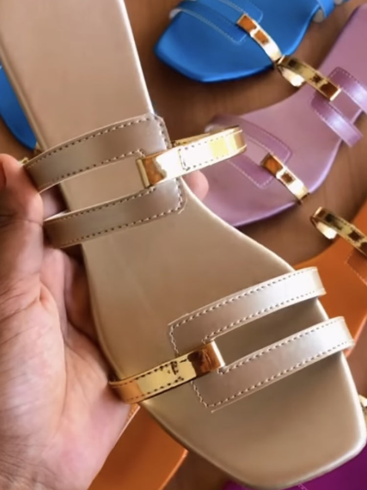 Casual Color Block Flat Heel Sandals