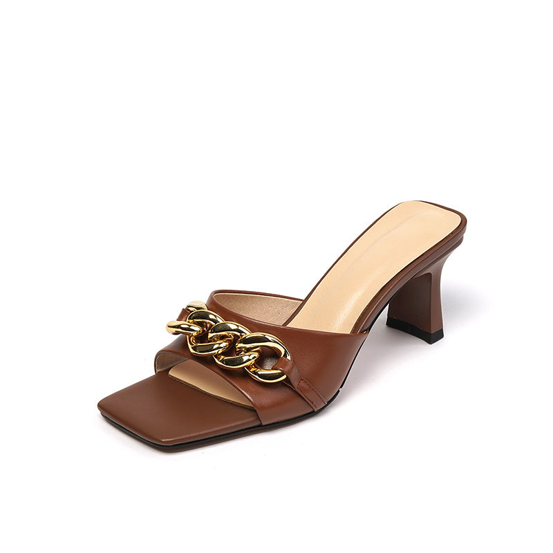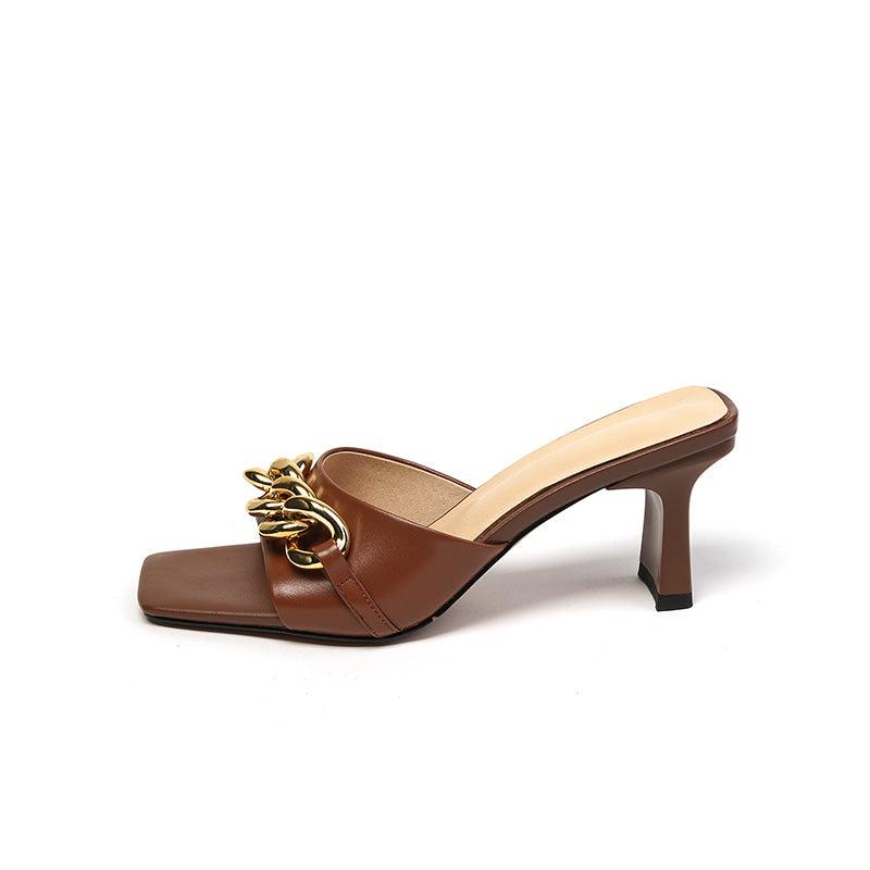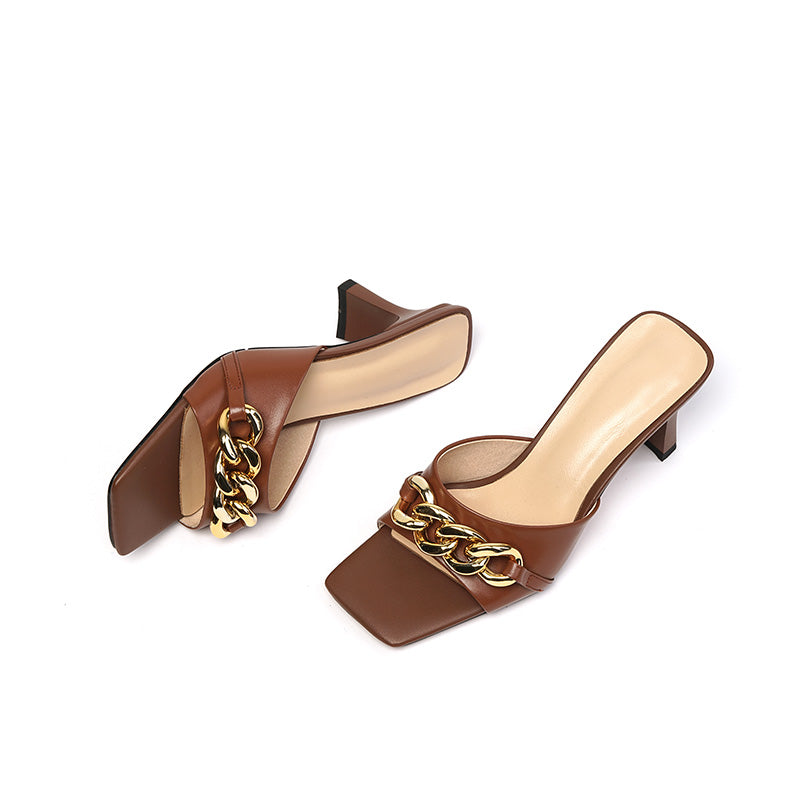 Cattleya Open Toe Mules with Chain