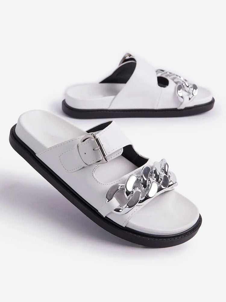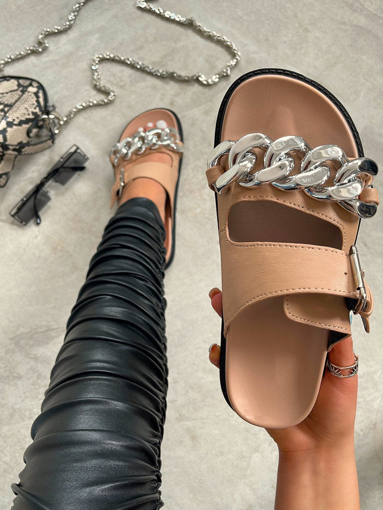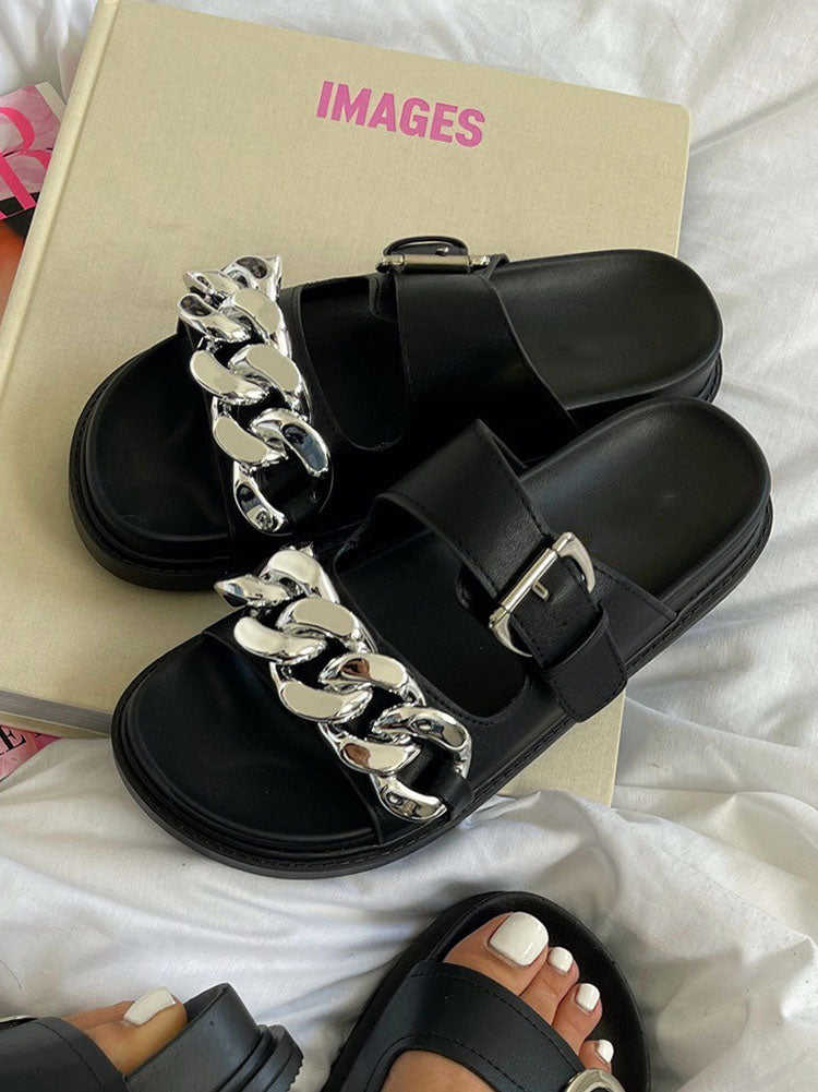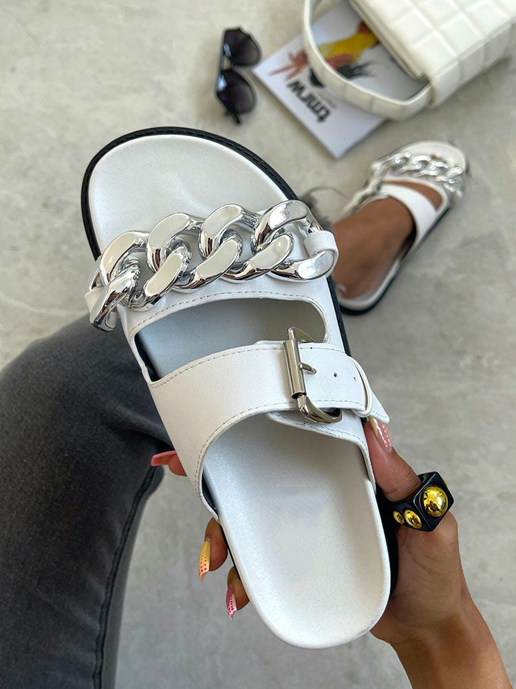 Chain Decor Double Buckles Sandals