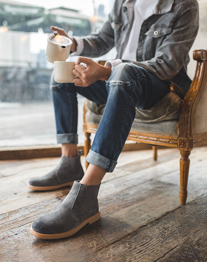 The Chelsea Boot style is all the rage. and these boots are no exception. With their sleek design and versatile color options of black. brown. gray. and khaki. they effortlessly elevate any outfit. from casual to dressy. Stand out from the crowd and make a fashion statement wherever you go.