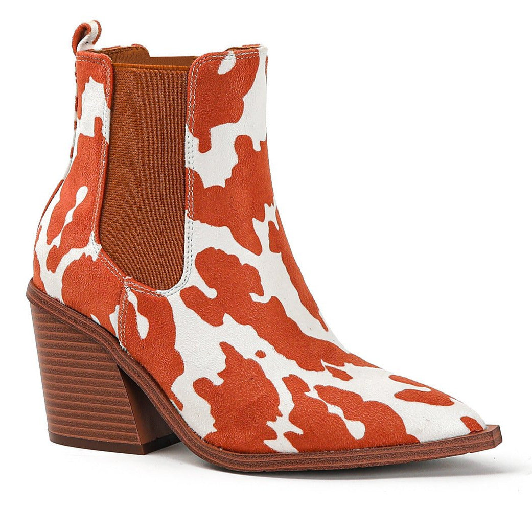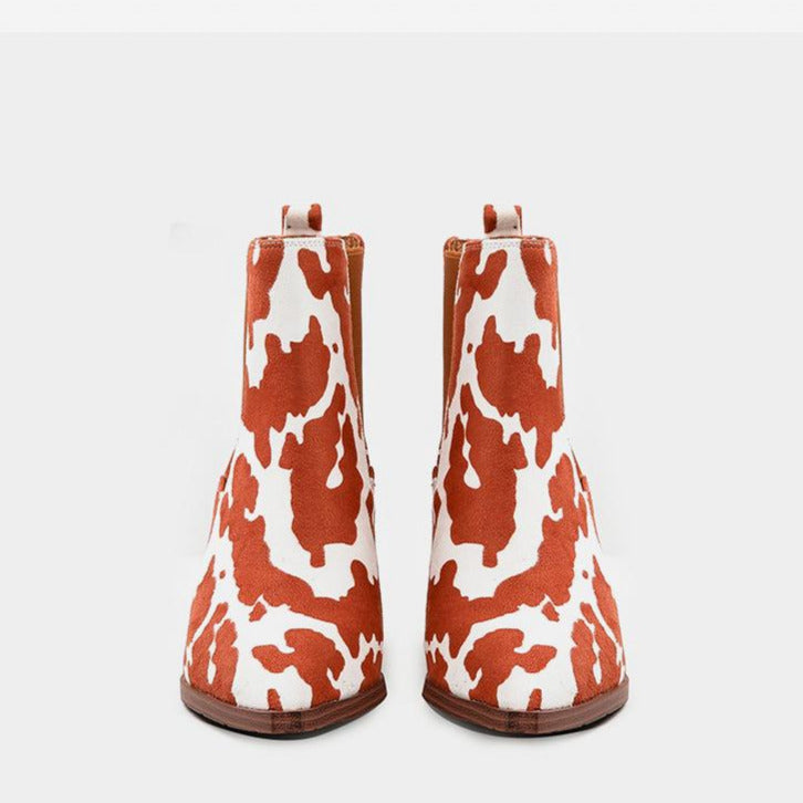 Chunky Heel Pointed Toe Floral Boots