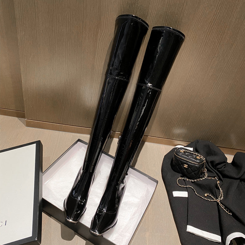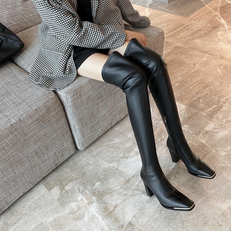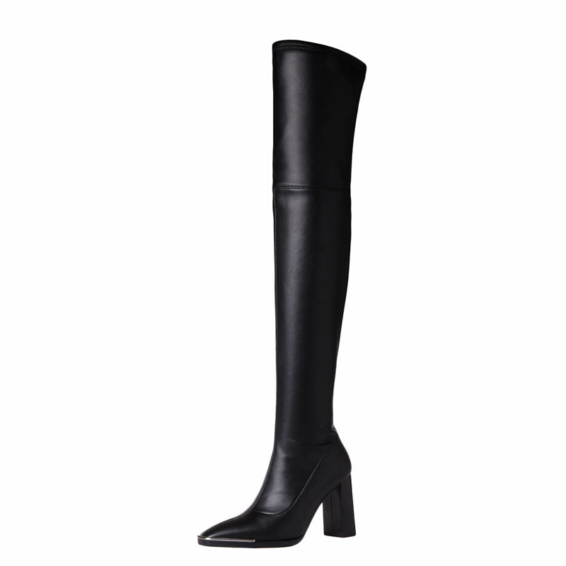 These mid chunky heeled thigh high boots are perfect for an elegant and chic look.