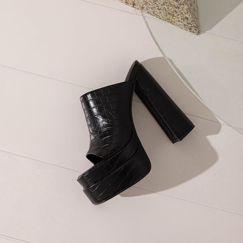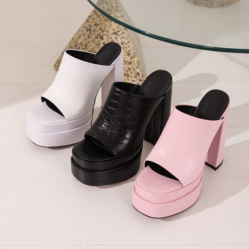 These platform heeled mules are what need for a stylish look.