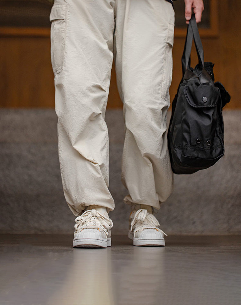 The color-matching pattern in a calming beige tone will surely stand out. This neutral color easily pairs with any outfit. whether it's your gym gear or your favorite casual ensemble. With these kicks. you're set for an effortlessly trendy look.