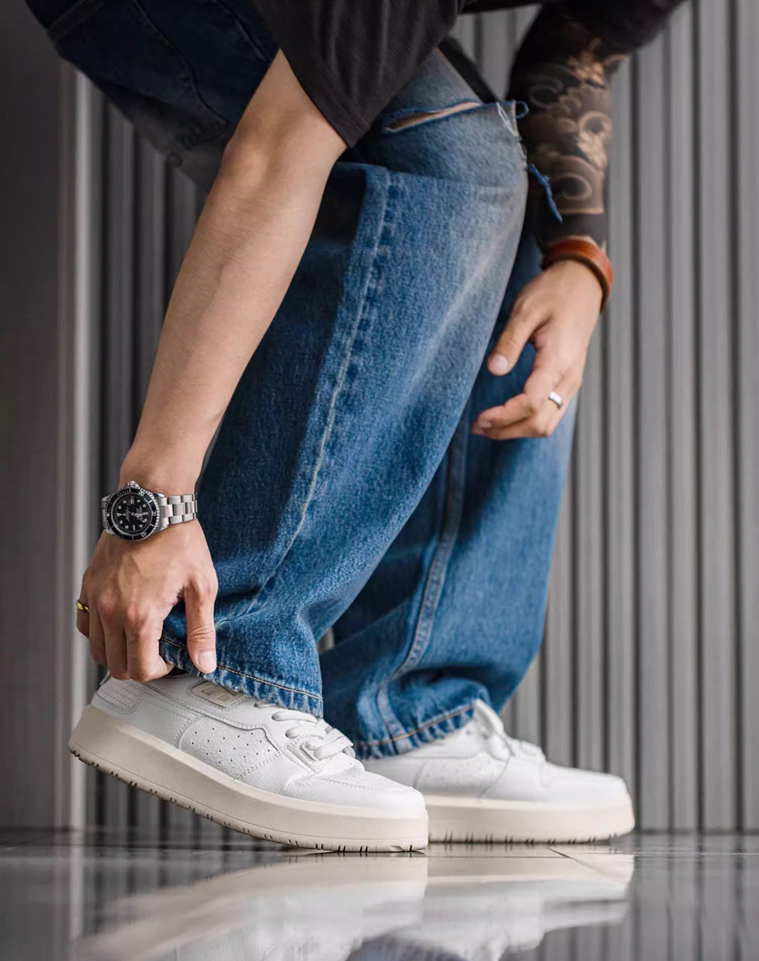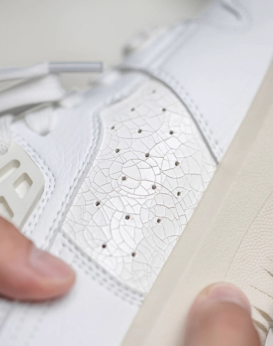 Looking for shoes that look good and last long? These Crushed Ice Soda Crack Whites are crafted using an adhesive shoemaking process. They're not just made to impress. but also to endure.
