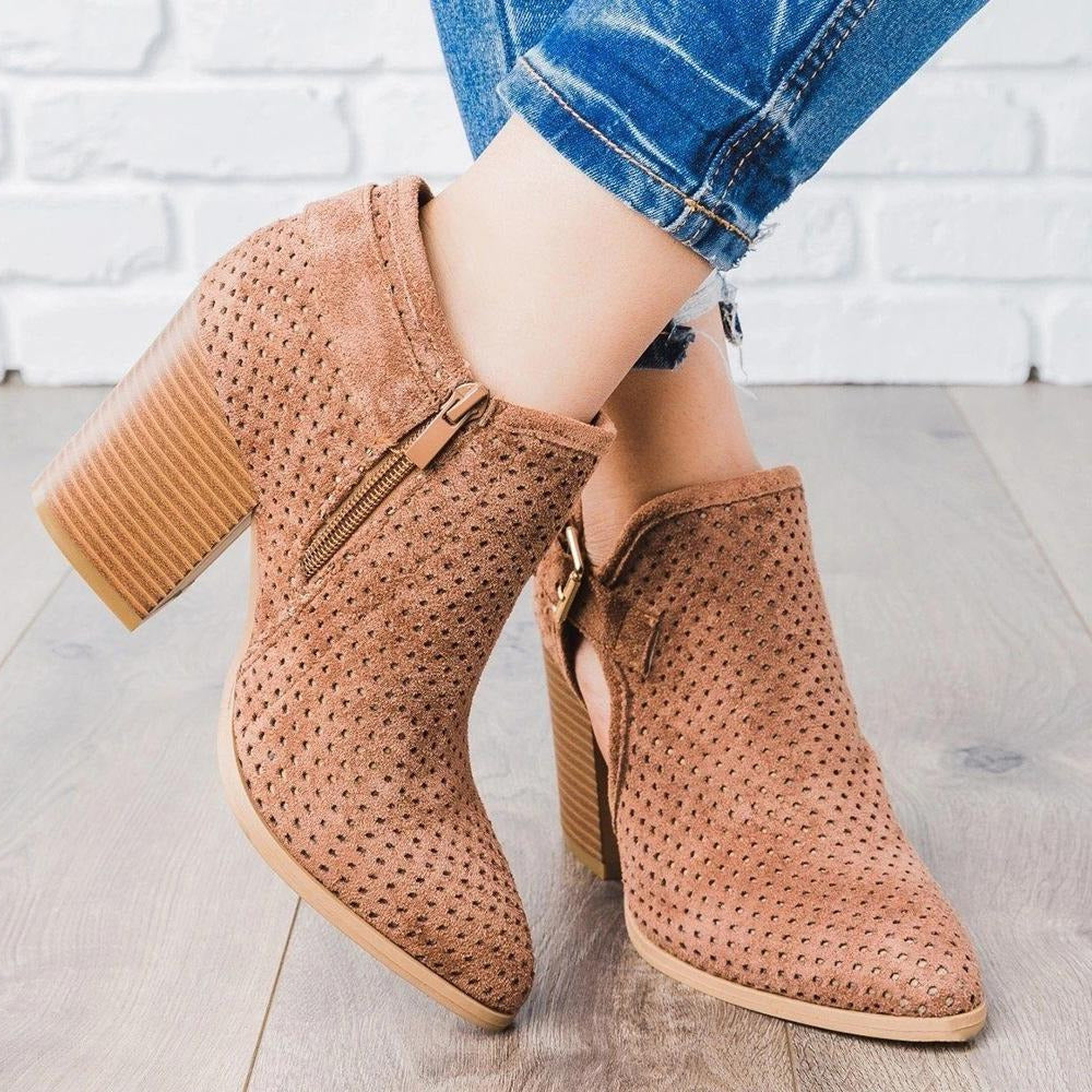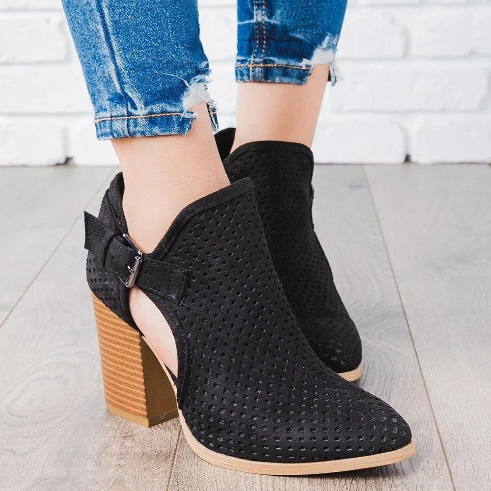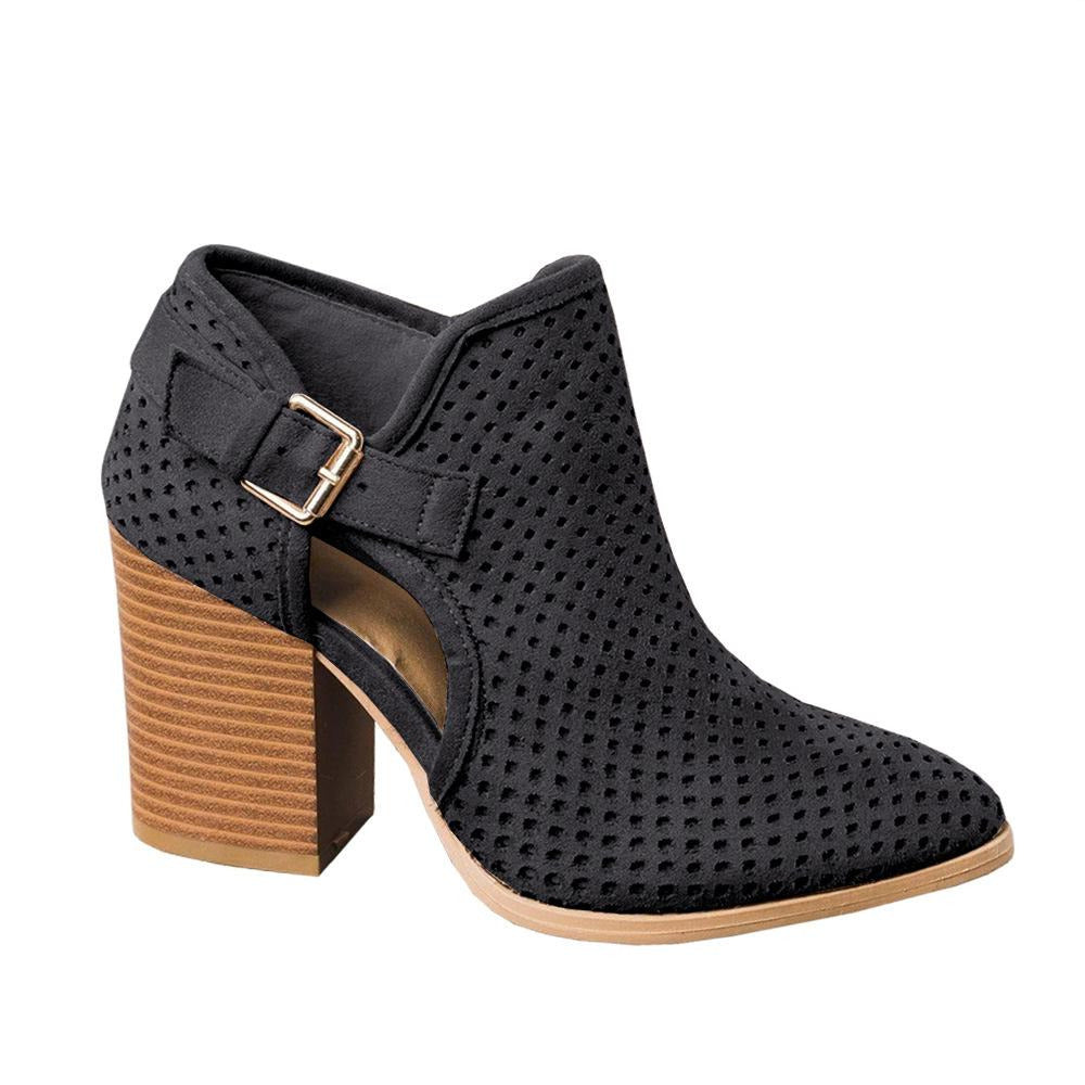 Cutout Buckle Design Thick Heeled Ankle Boots