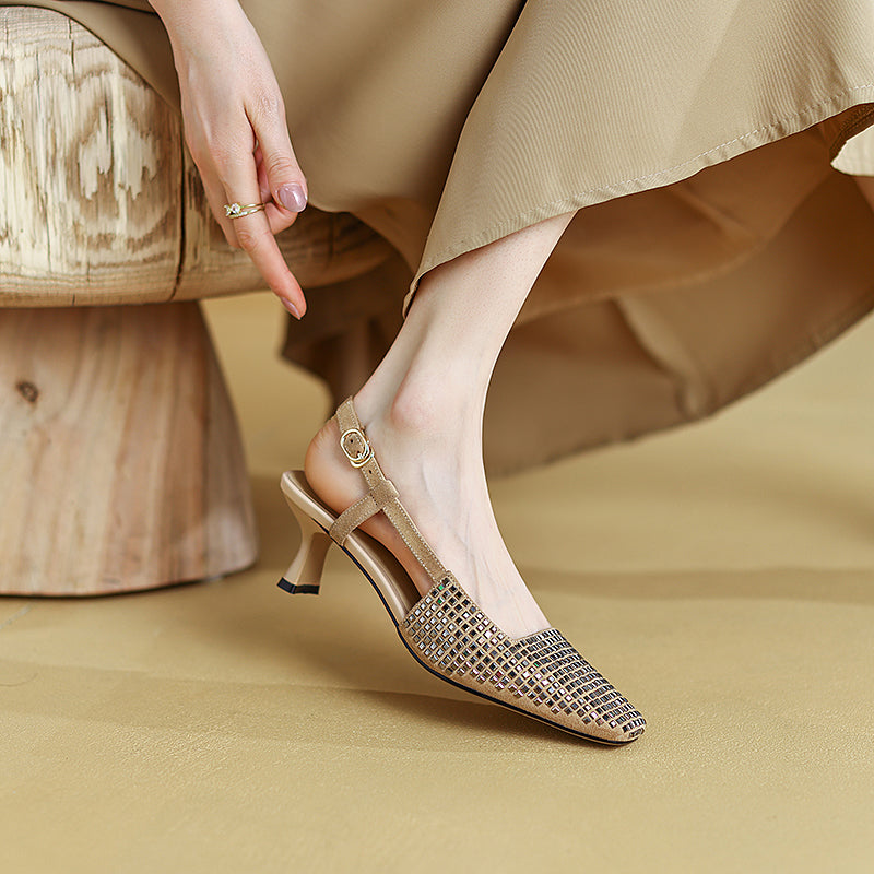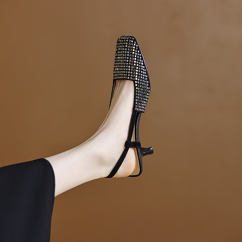 Studded with rhinestone. these slingbacks are steady and comfy. Every color is perfect for spring and summer days.