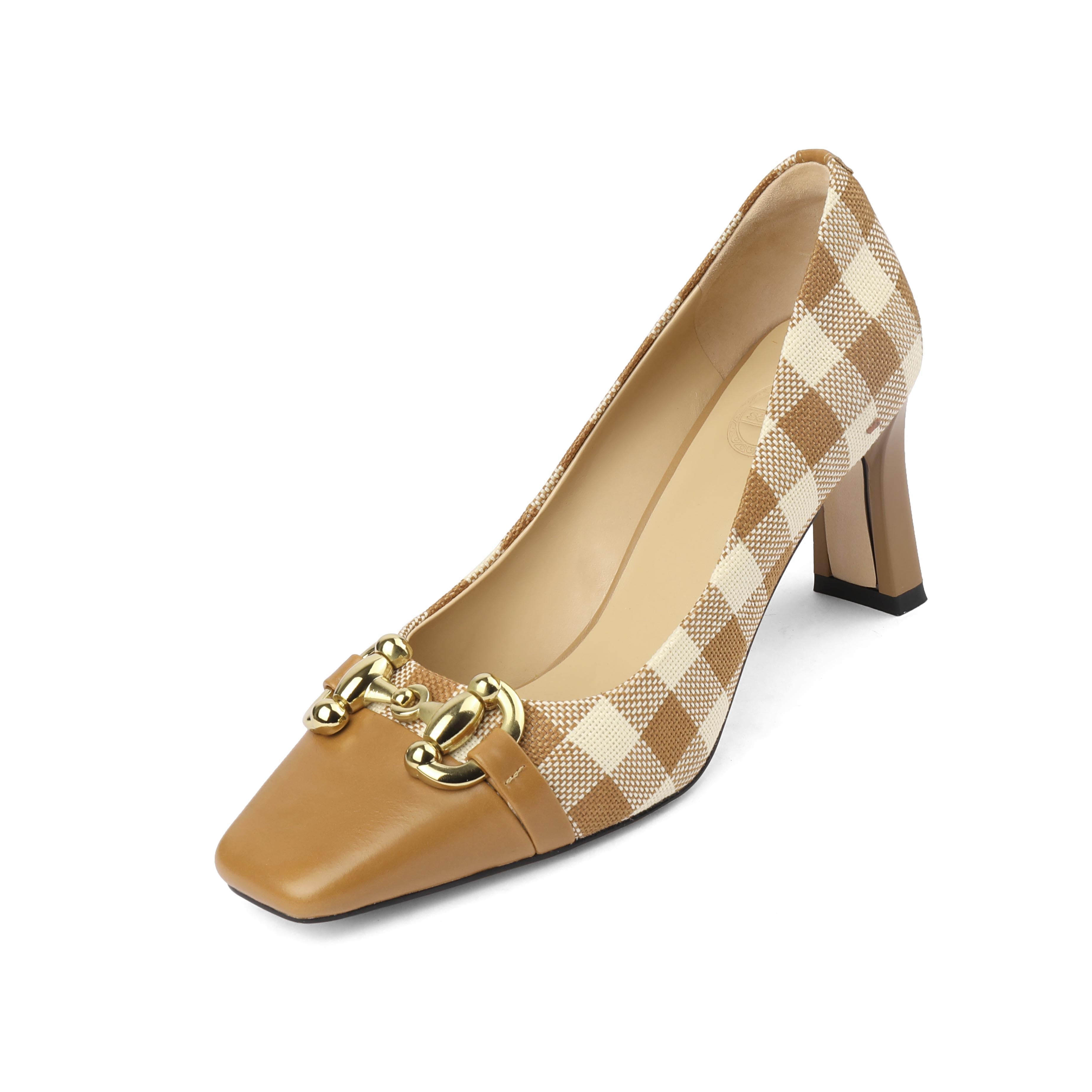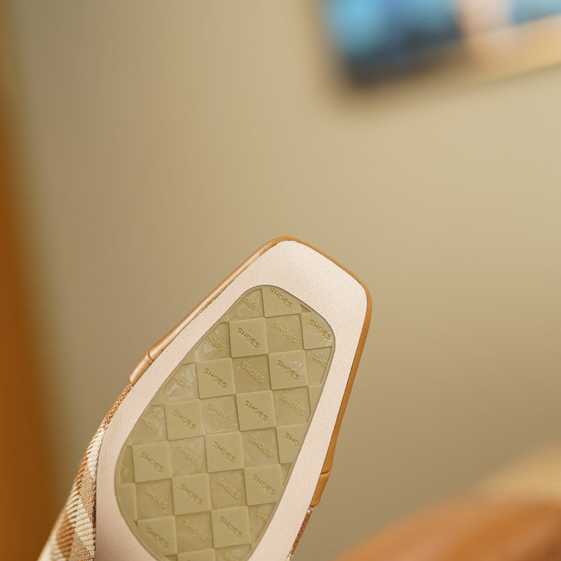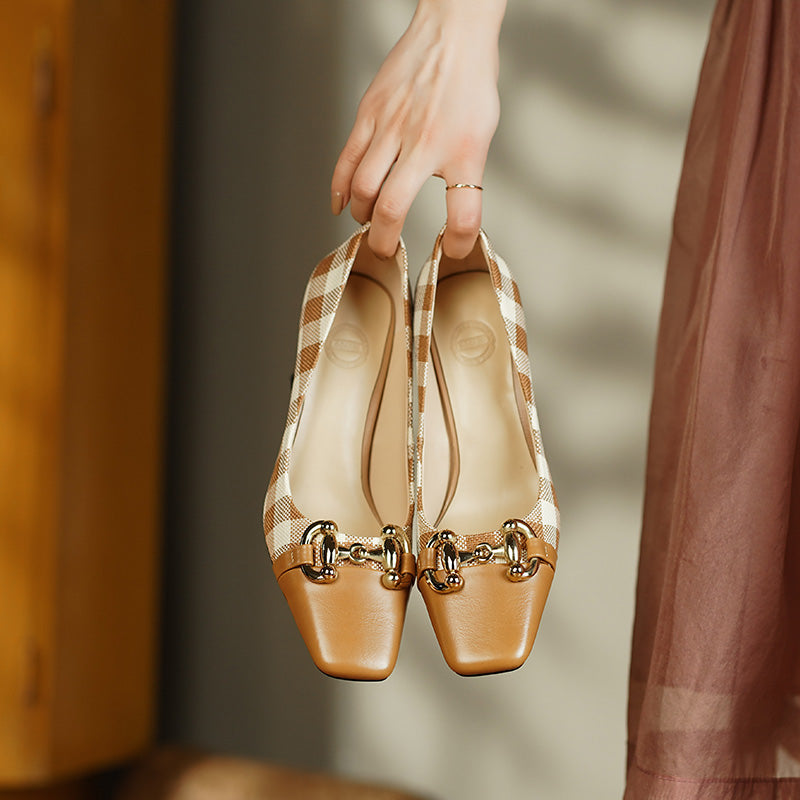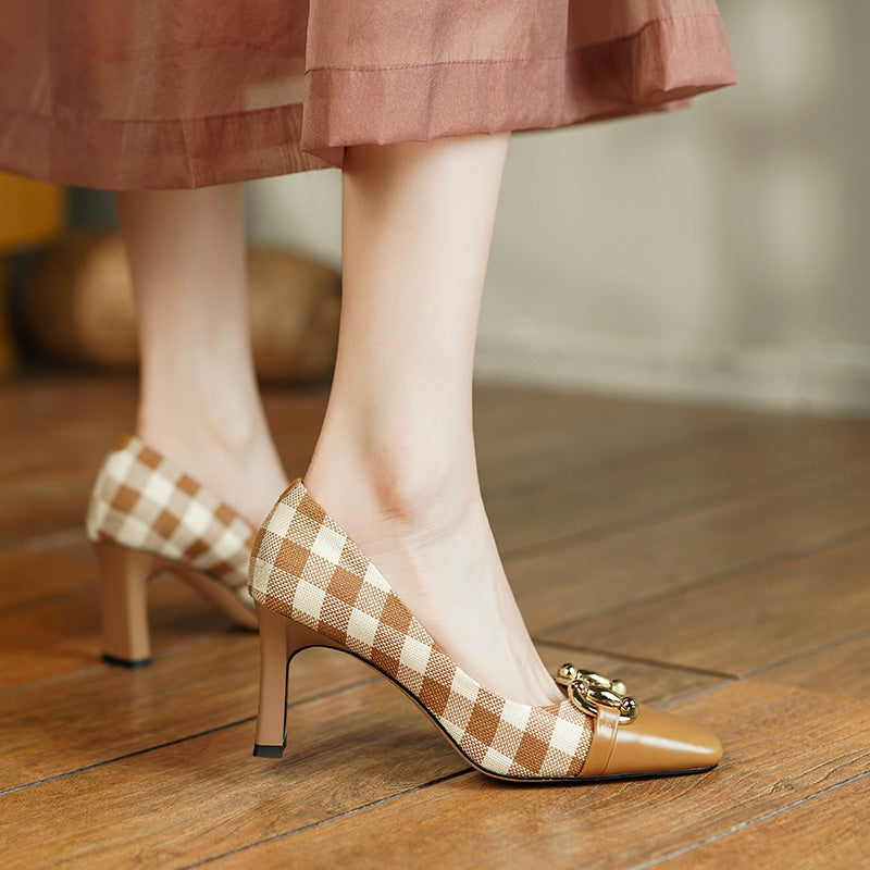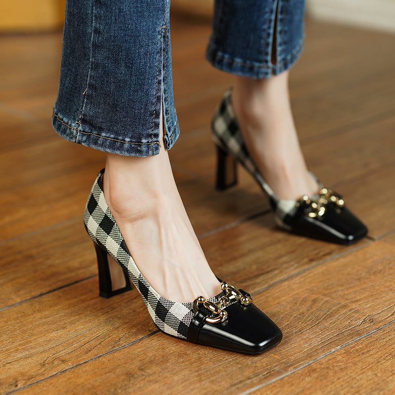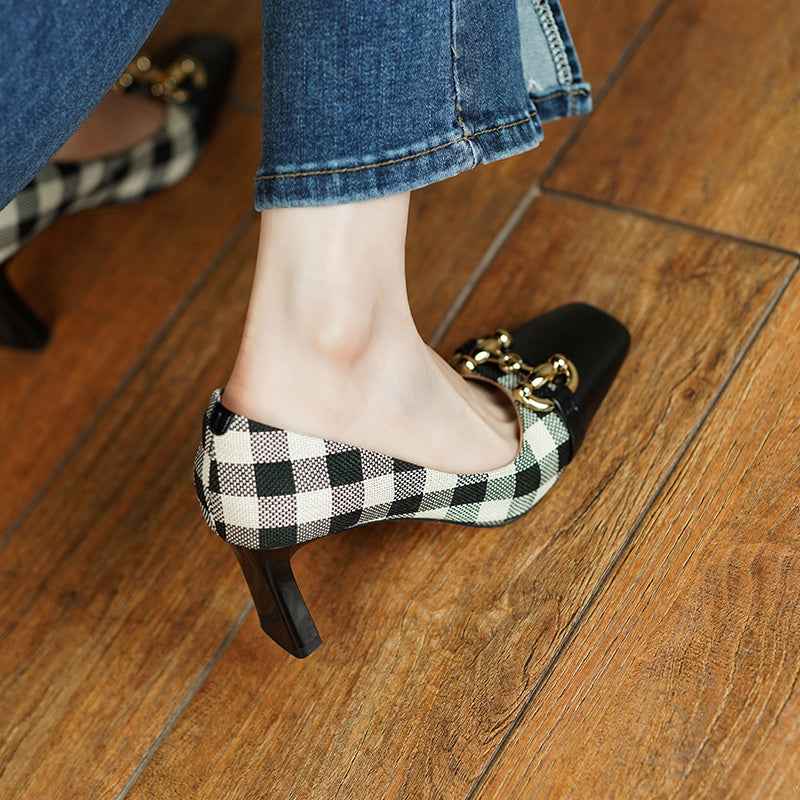 Dana Plaid Patchwork Mid Heel Slip on Pumps