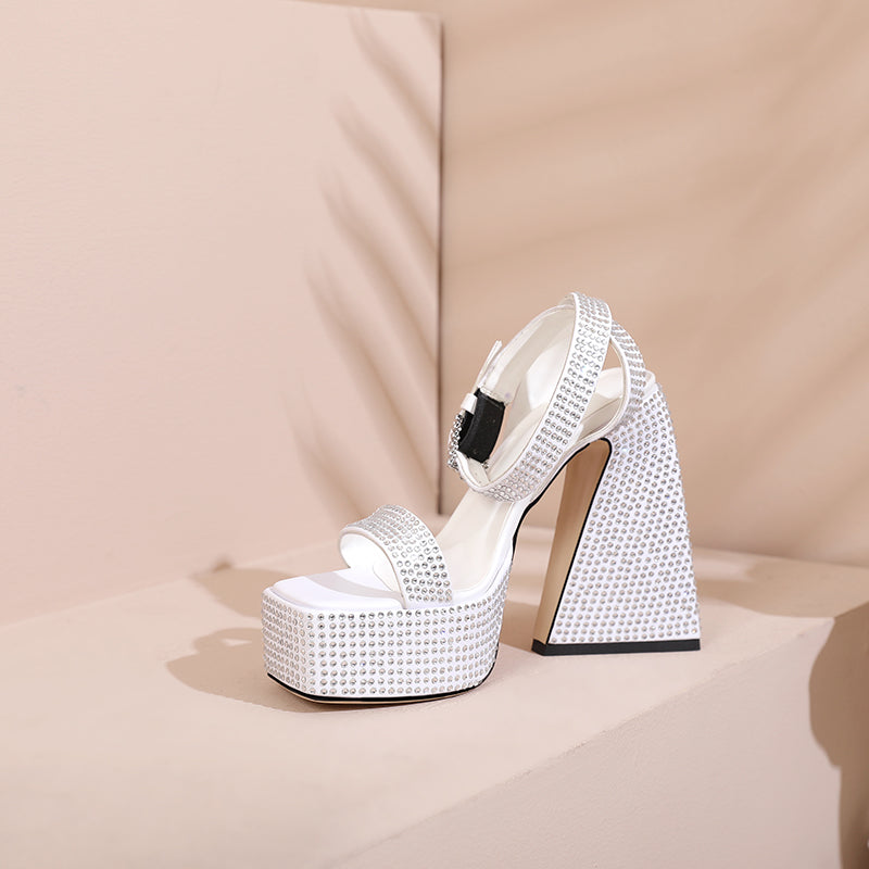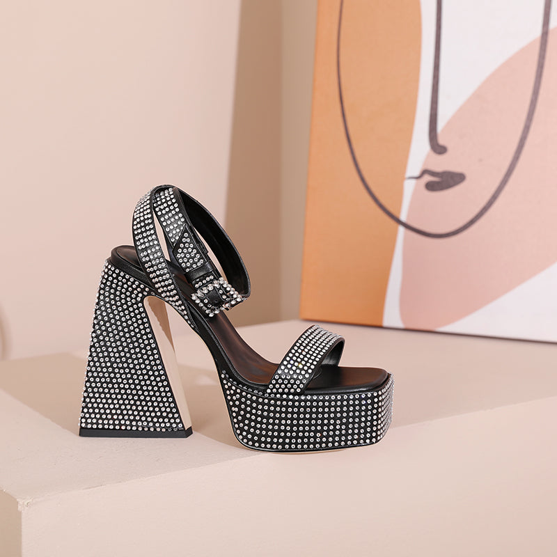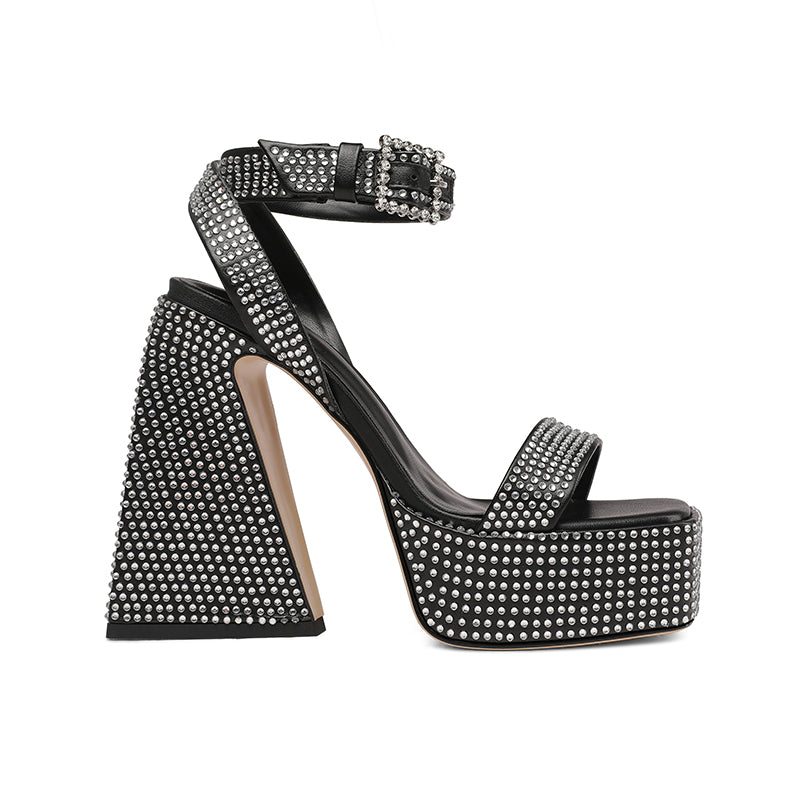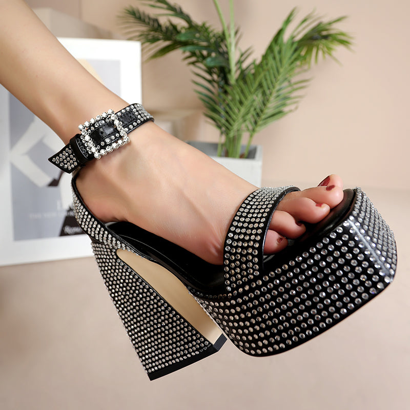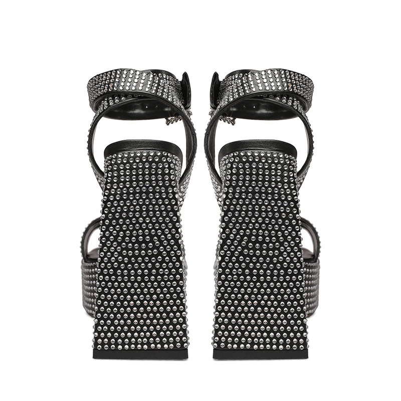 Davina Platform Chunky Heel Rhinestone Studded Sandals