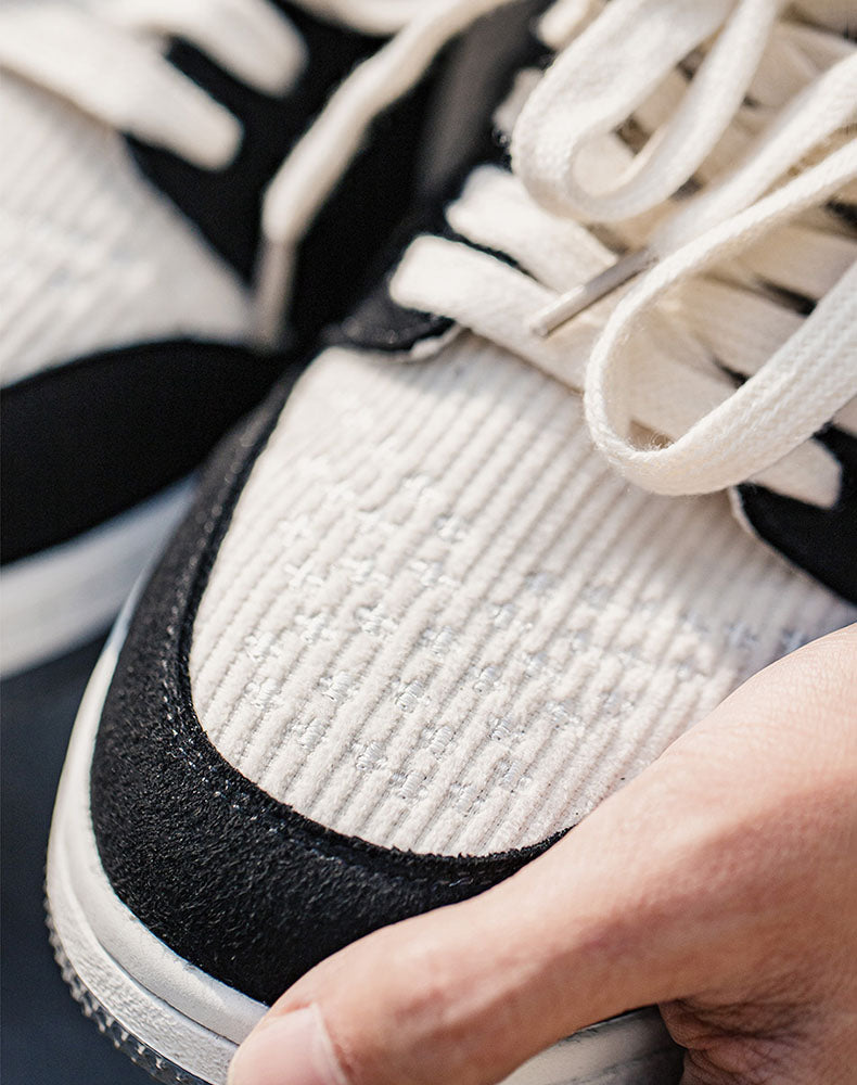 With a color-matching pattern of bold black and brilliant white. these shoes evoke the essence of a panda in an abstract. artistic way. They're not just shoes. they're a conversation starter!