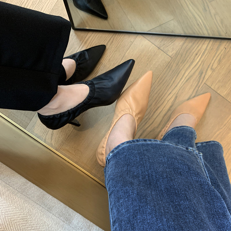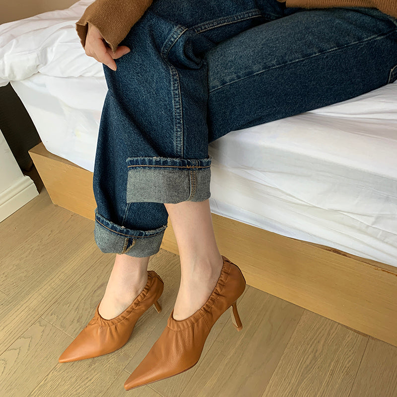 Handmade with premium sheepskin. these Korean style heels are stylish and super comfortable.