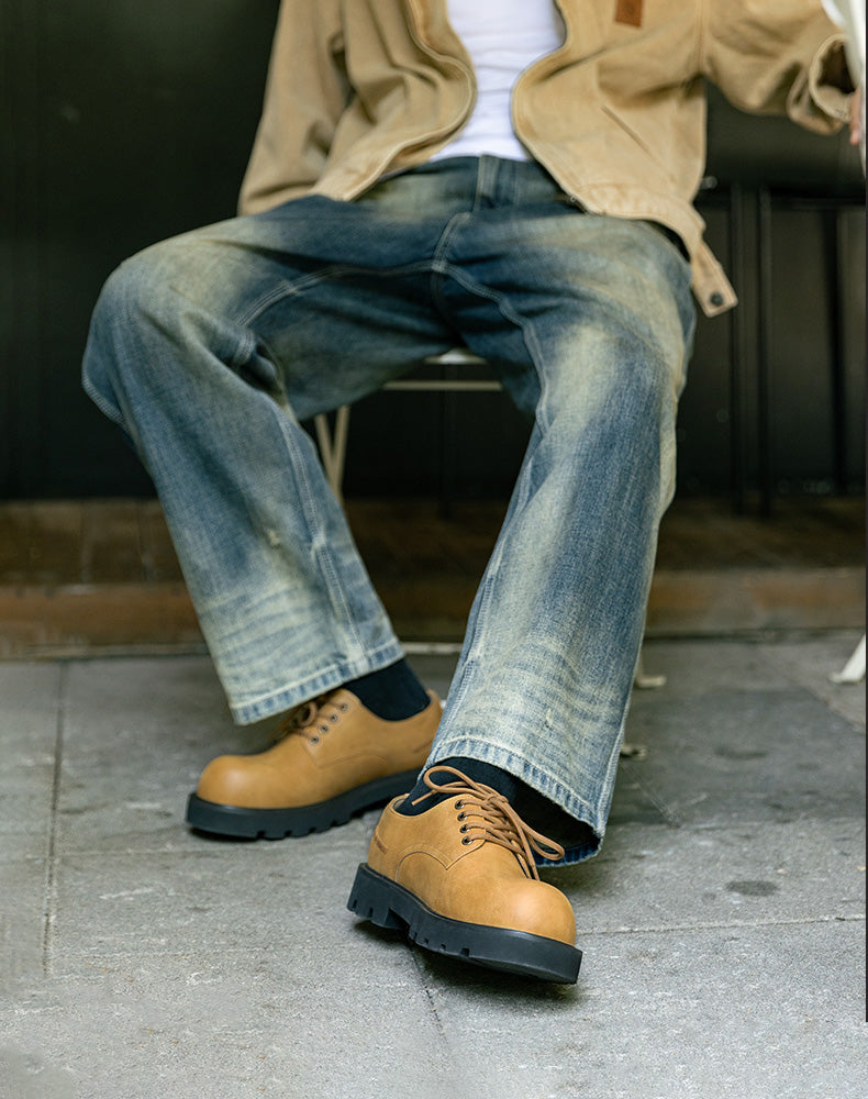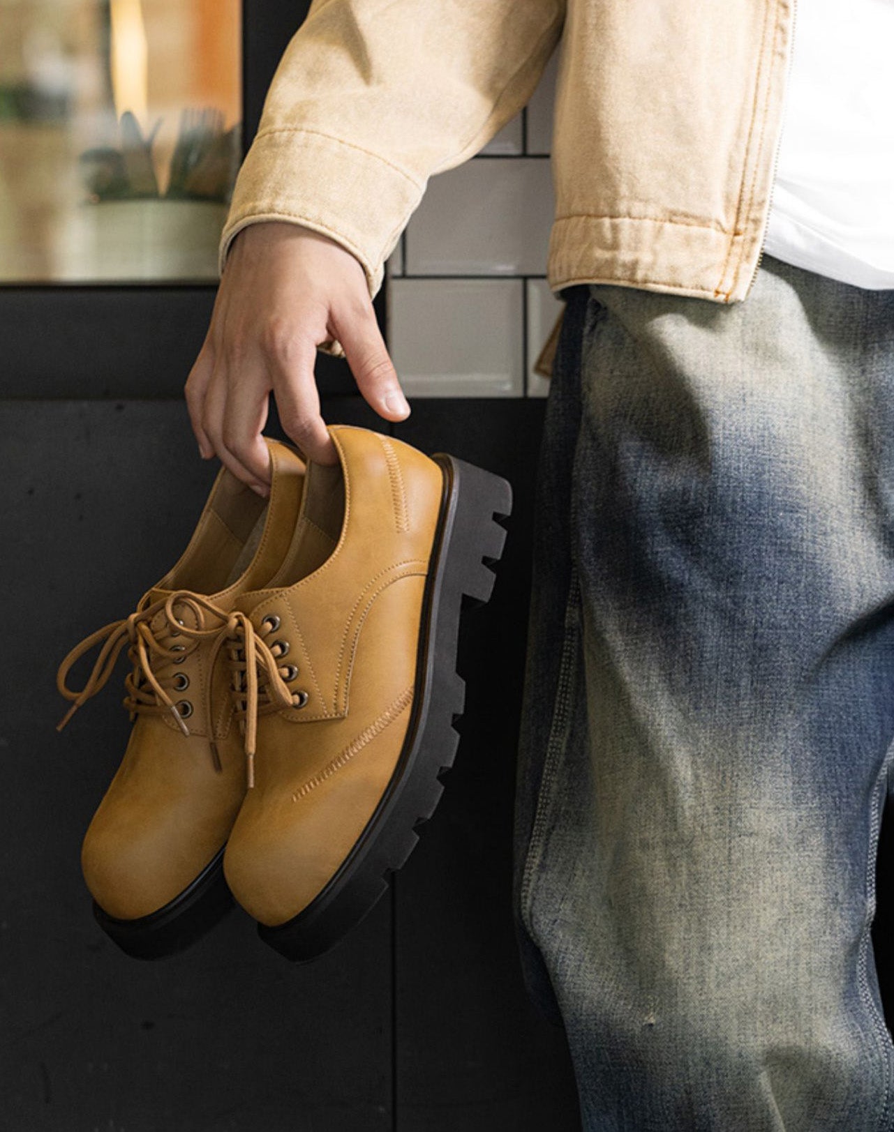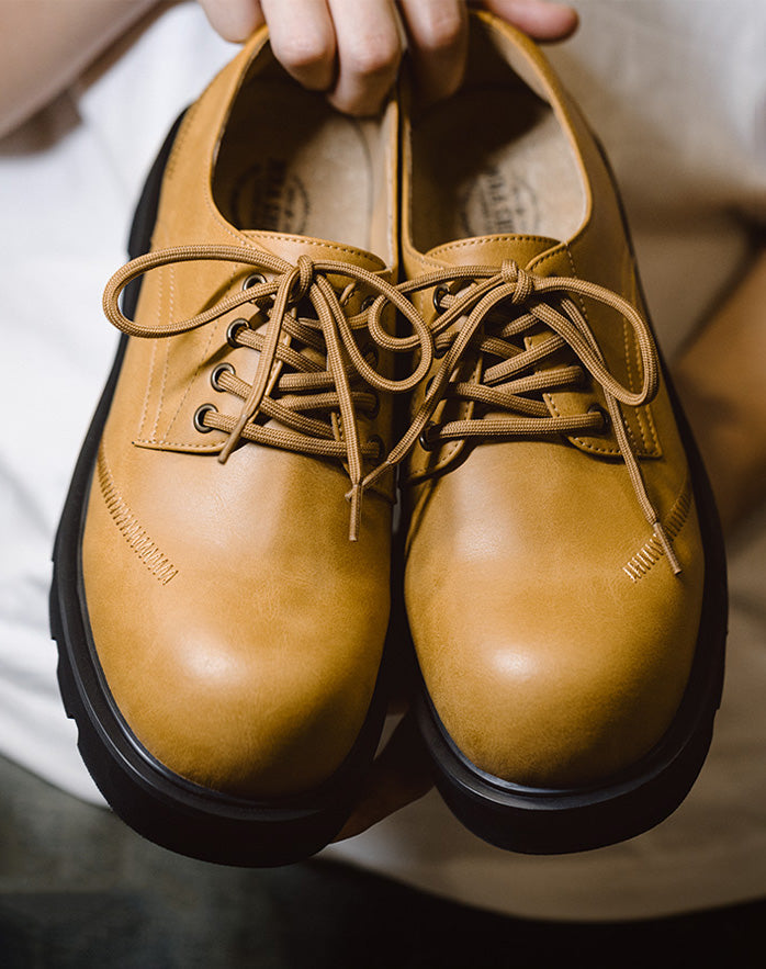 Step up your style game with our Derby Big Head Workwear Low-Top Yellow Leather Men's Dress Shoes! These shoes are the perfect blend of casual and classy. designed to keep you comfortable and stylish all day long.