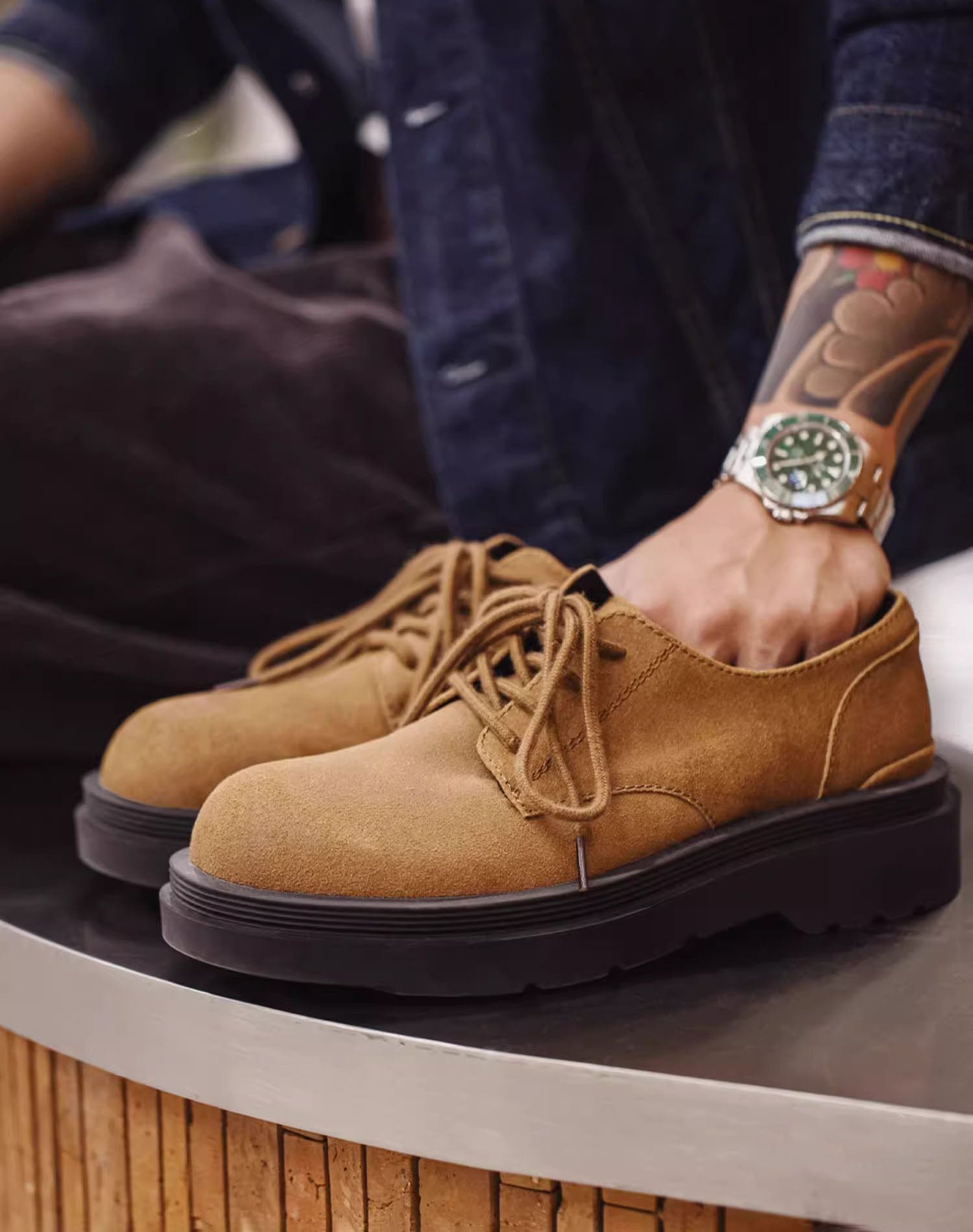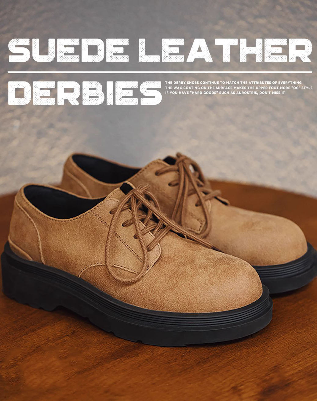 Elevate your style game with our Derby Oil Wax Suede Casual Leather Versatile Men's Dress Shoes. These shoes are more than just footwear; they're your key to comfort. versatility. and timeless fashion.