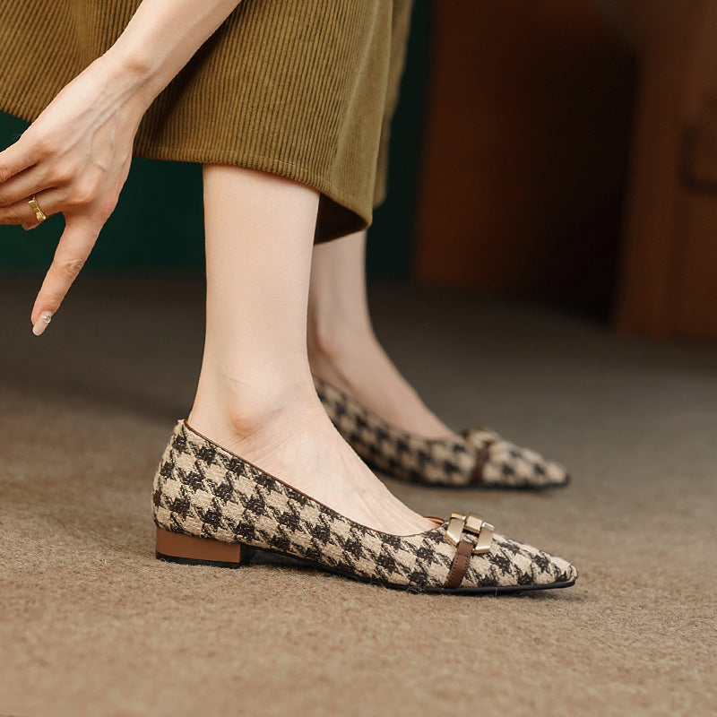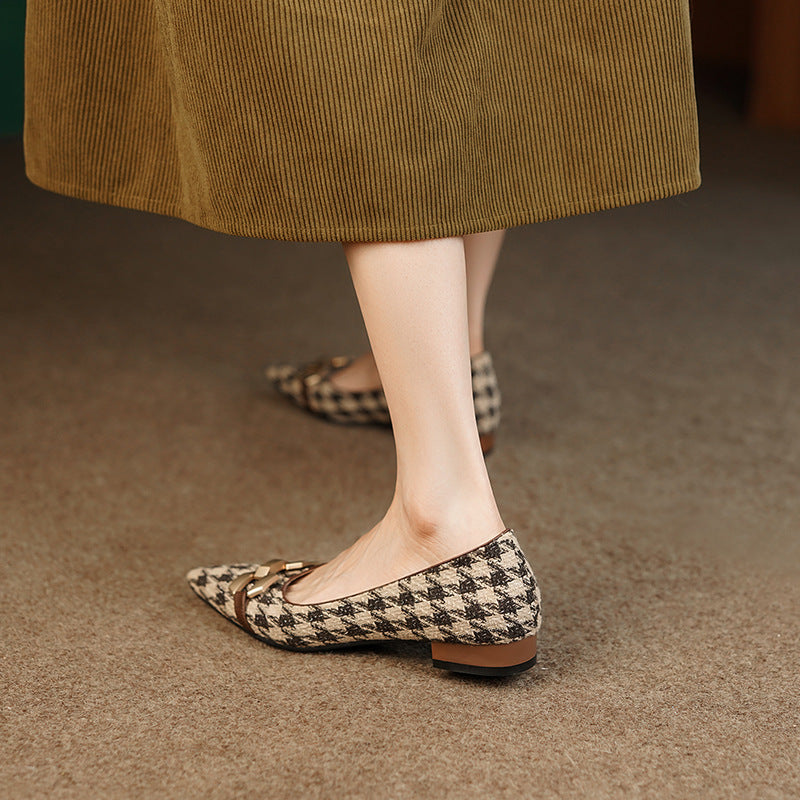 What a pretty pair of flats. It is a ballet flats look but with a little heel. which adds to support to your soles. The plaid. metallic tassel decoration and the amazing color combo will bring you many compliments.