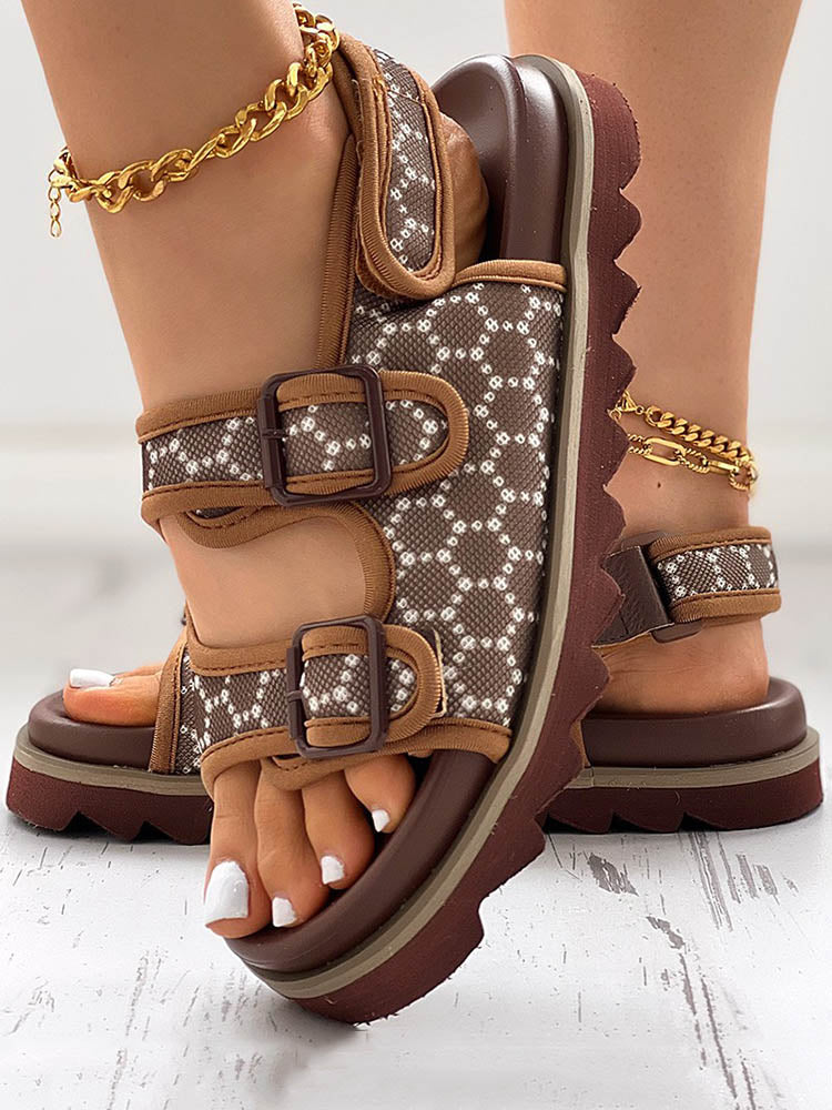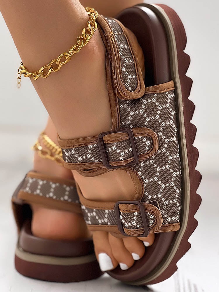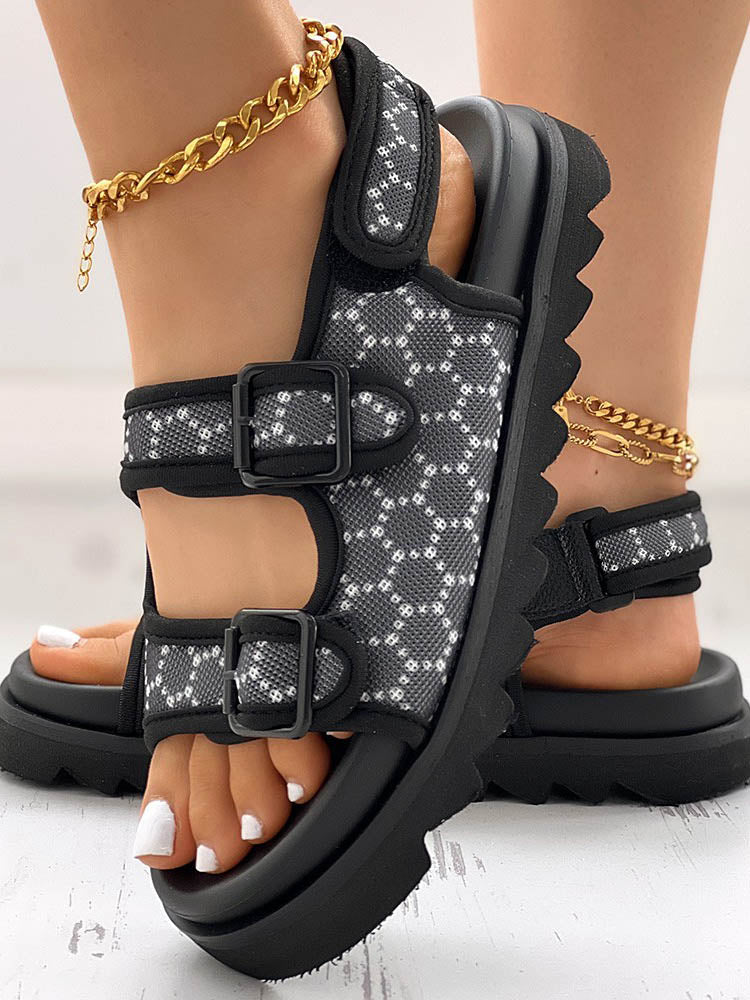 Double Buckle Strap Diamante Flat Sandal