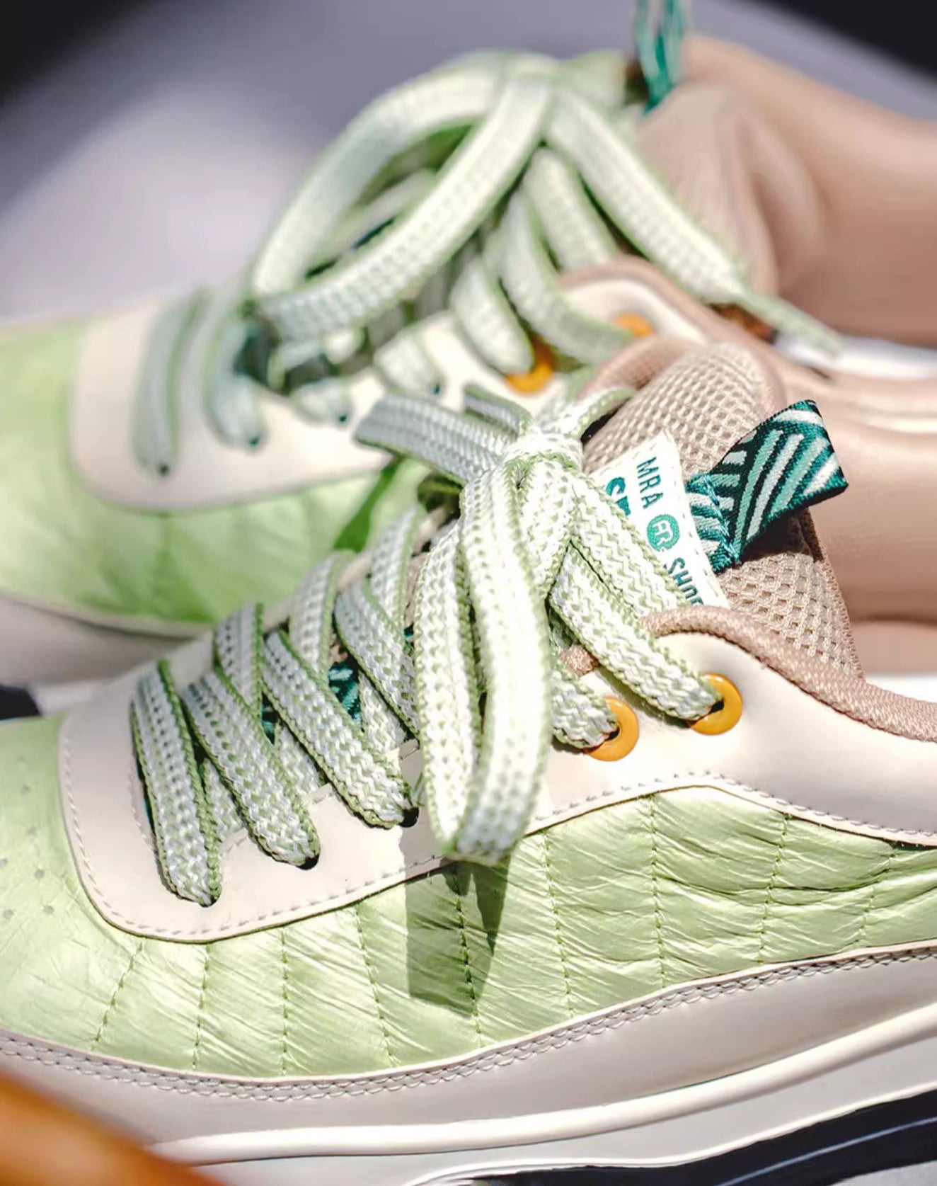 🌈 With a trendy color block pattern and a refreshing green hue. these casual shoes will add a touch of sophistication to your look.