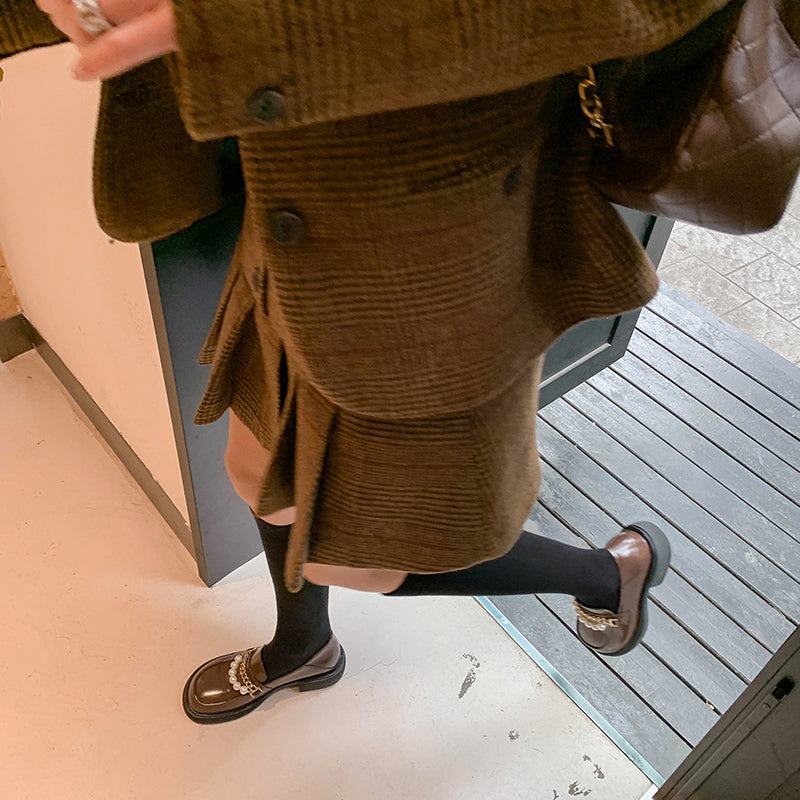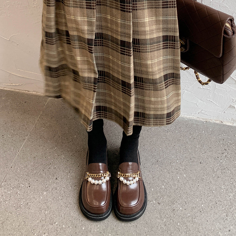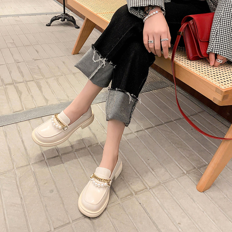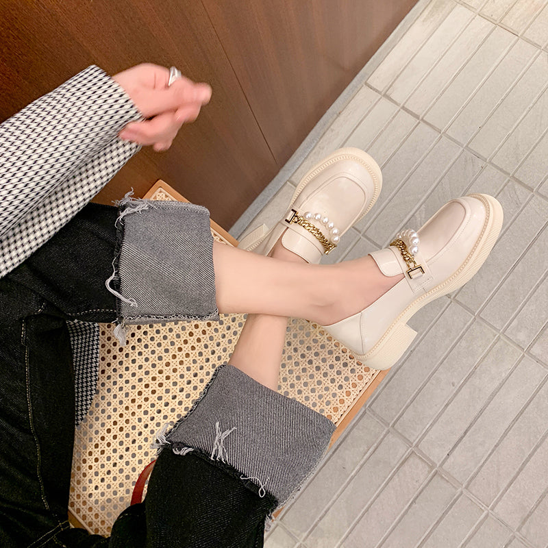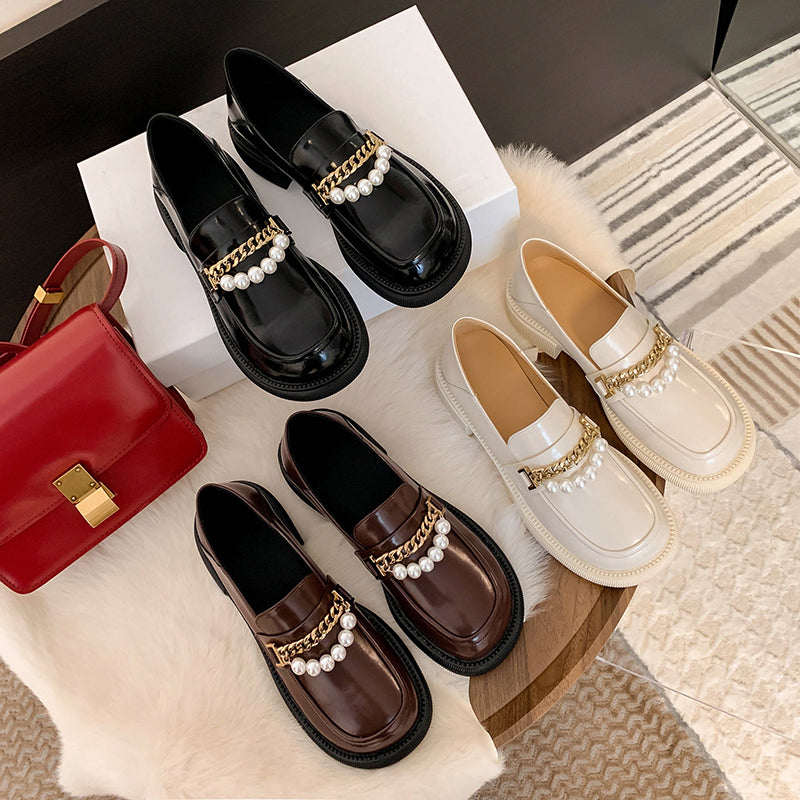 These are your daily loafers that are designed with unique round toe and the cute chain and pearl detail.