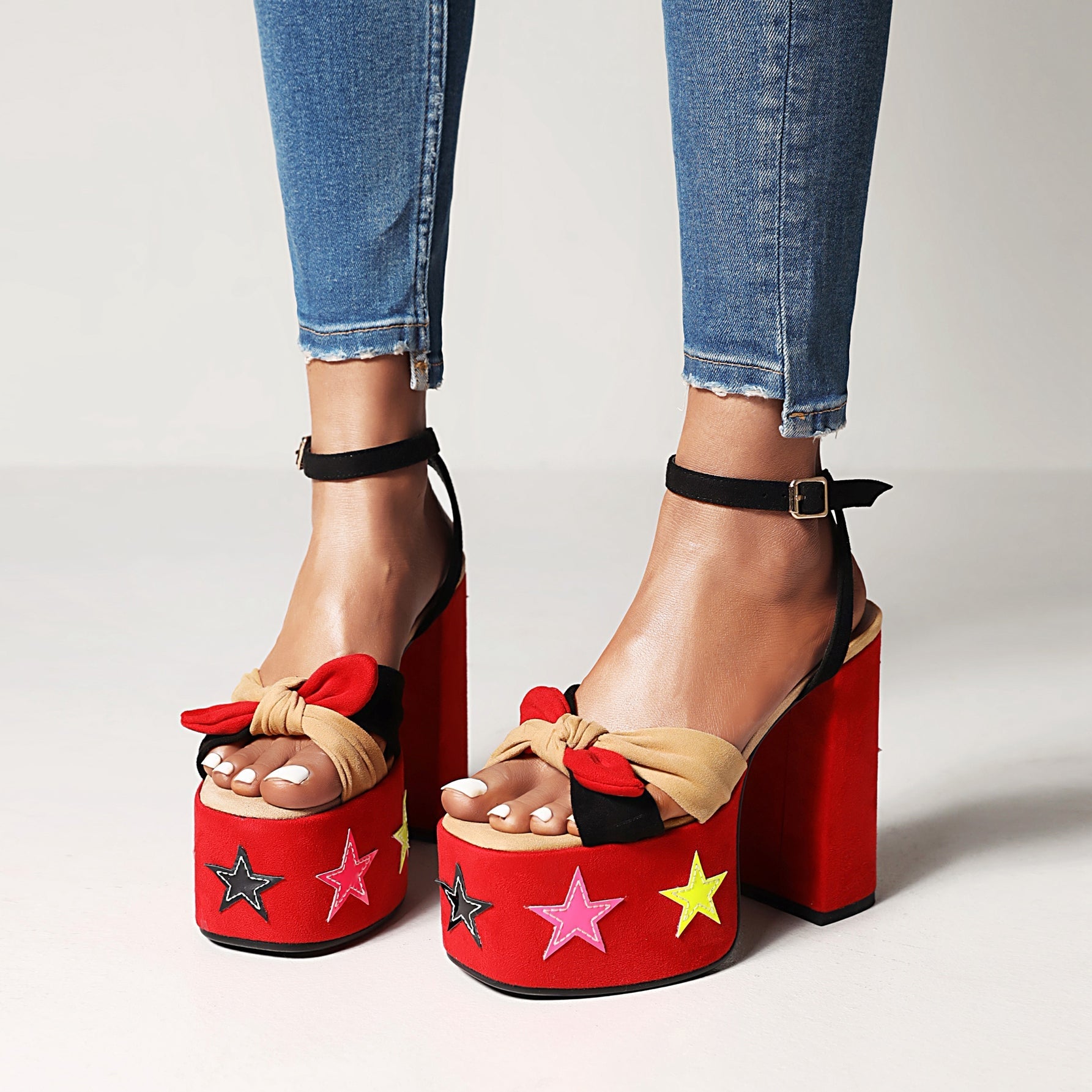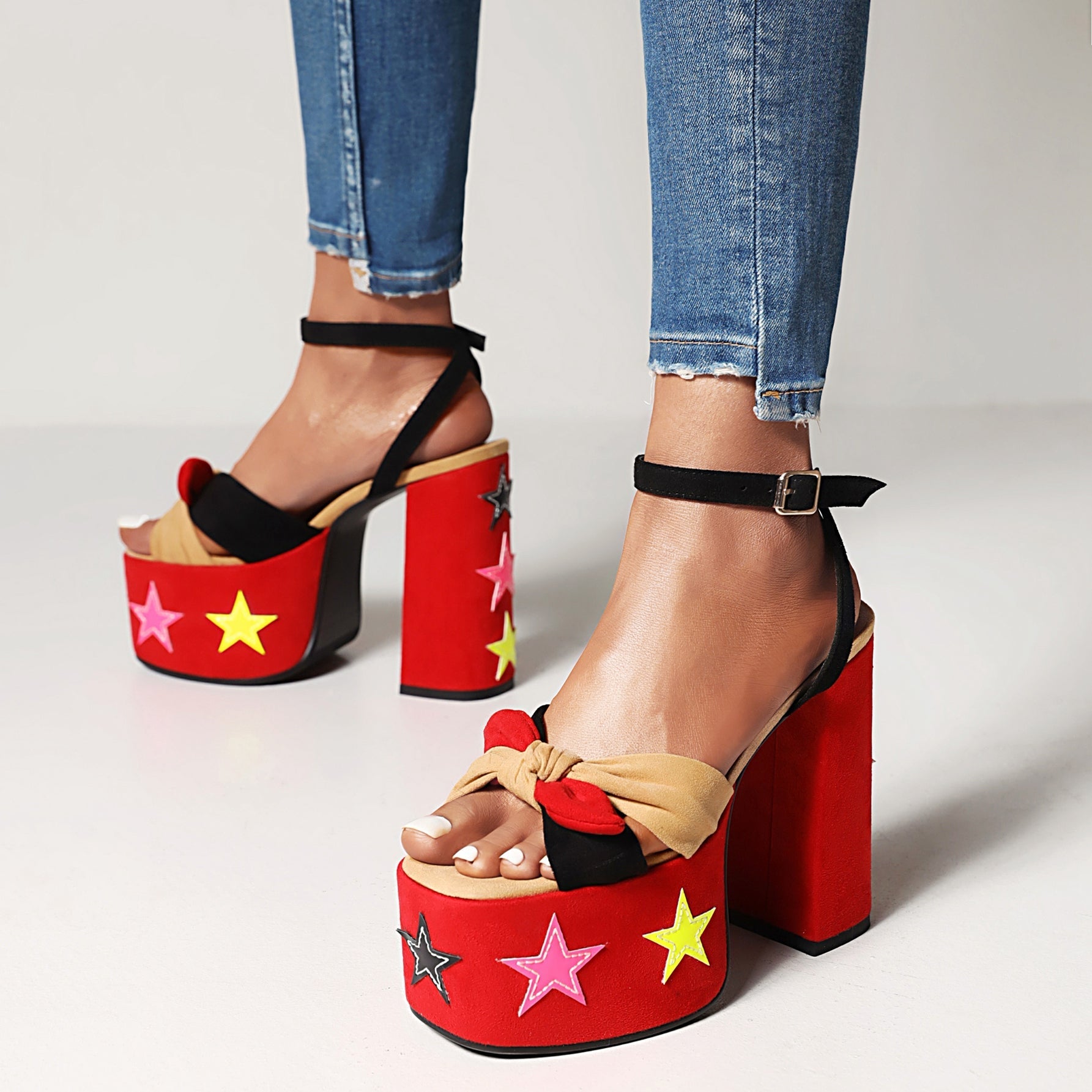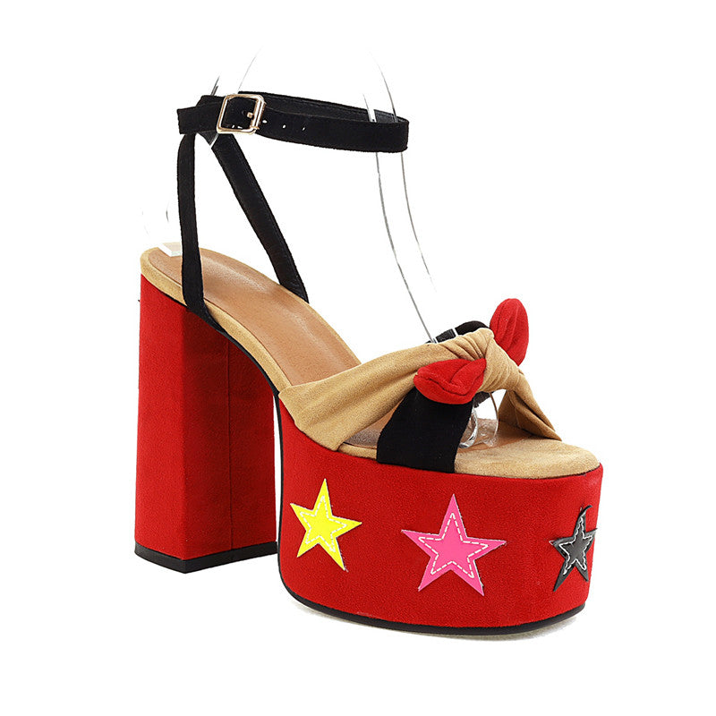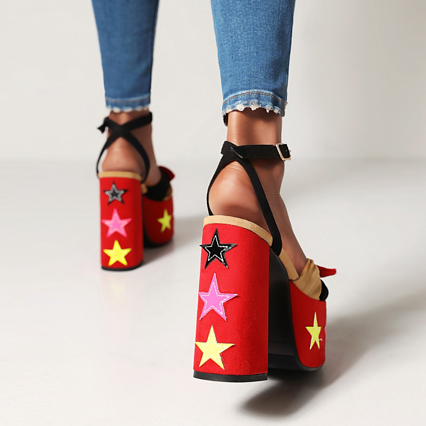 Ellie Platform Red Star Chunky Heel Ankle Strap Sandals