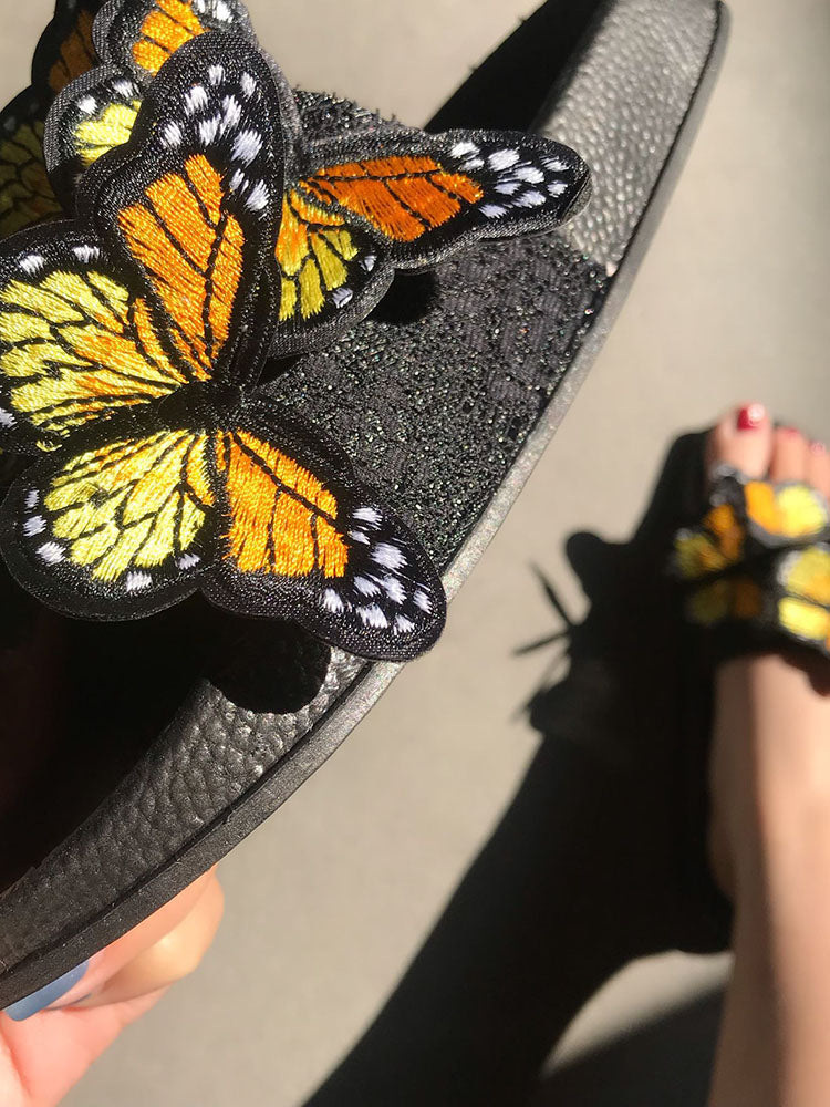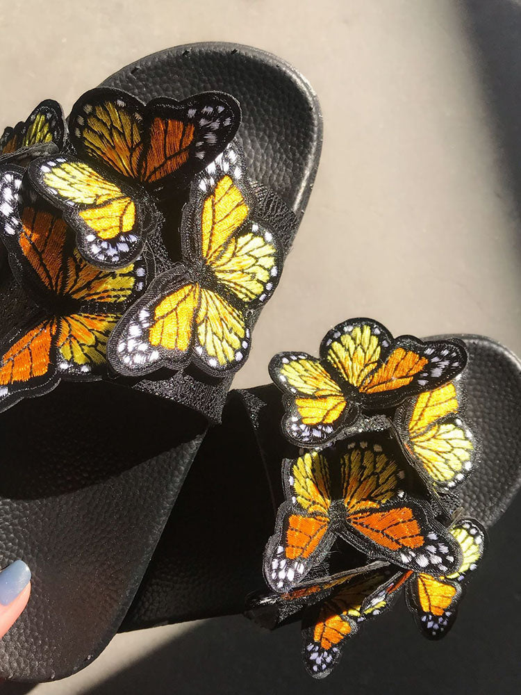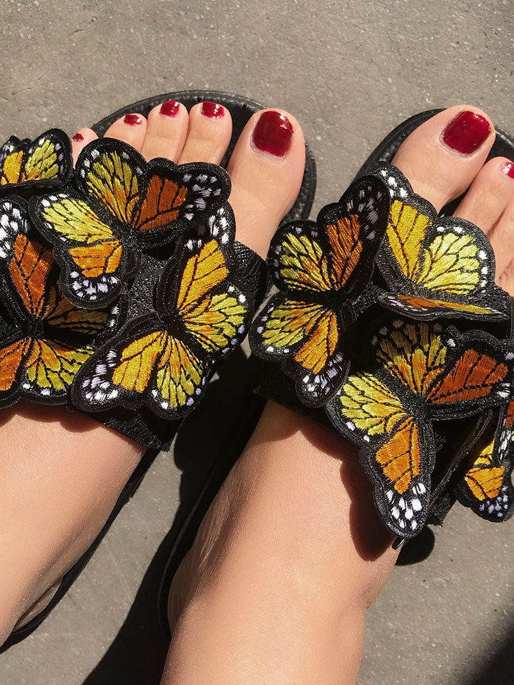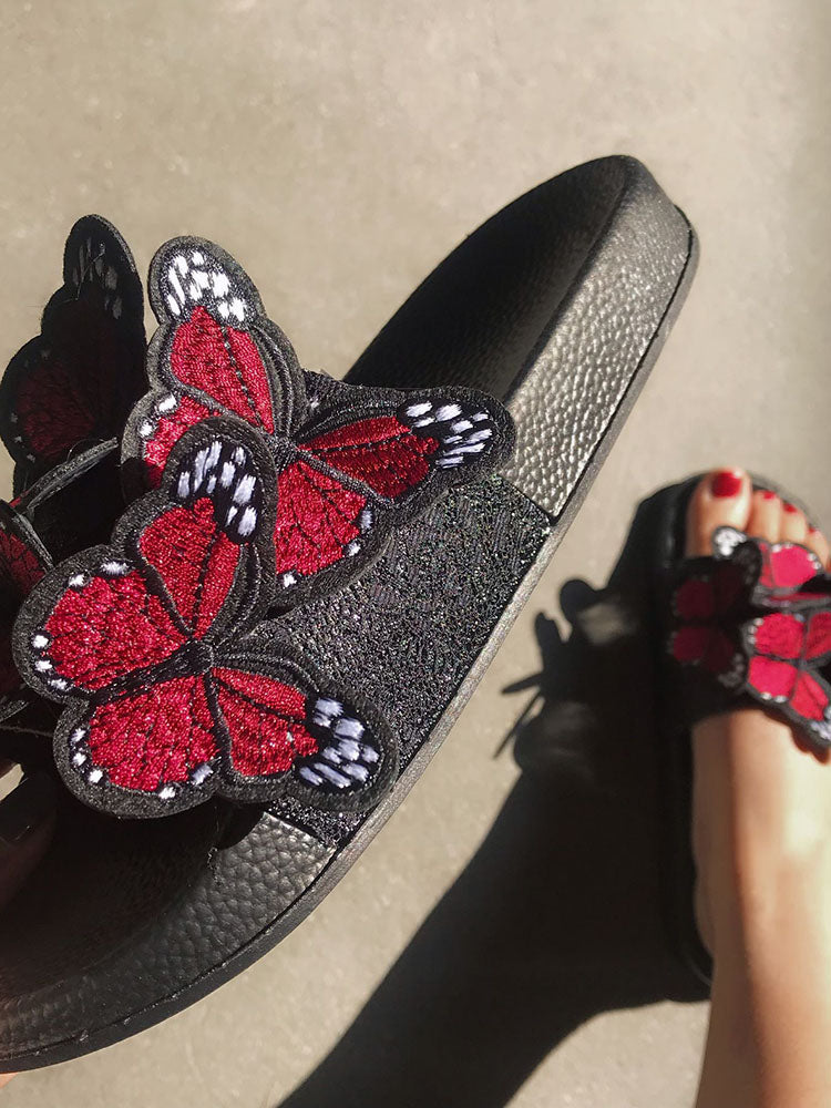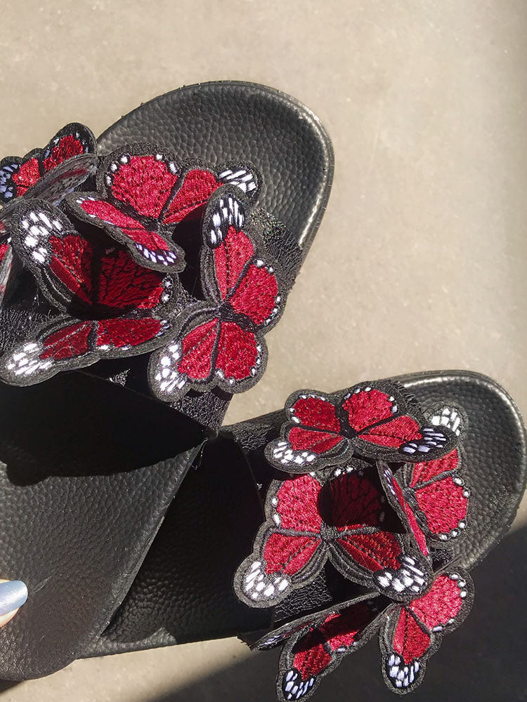 Embroidered Butterfly Slippers
