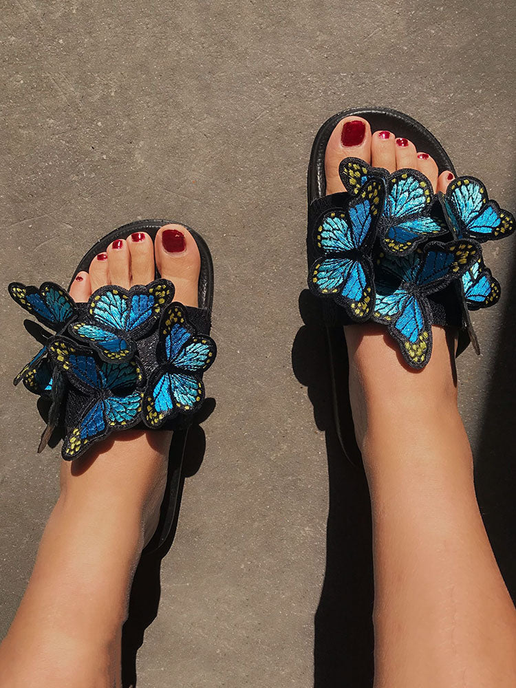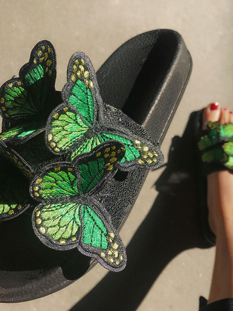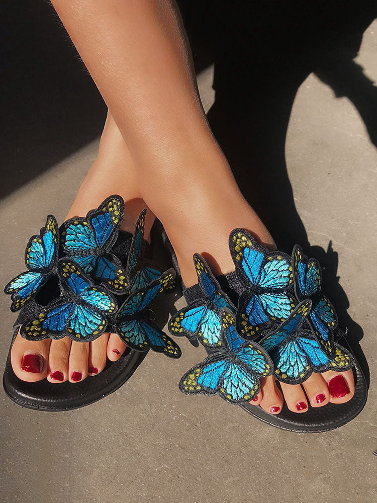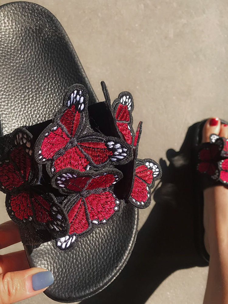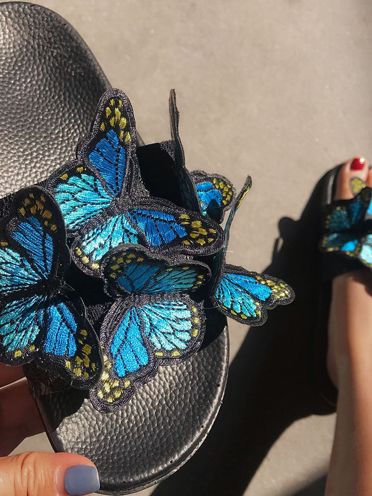 Embroidered Butterfly Slippers