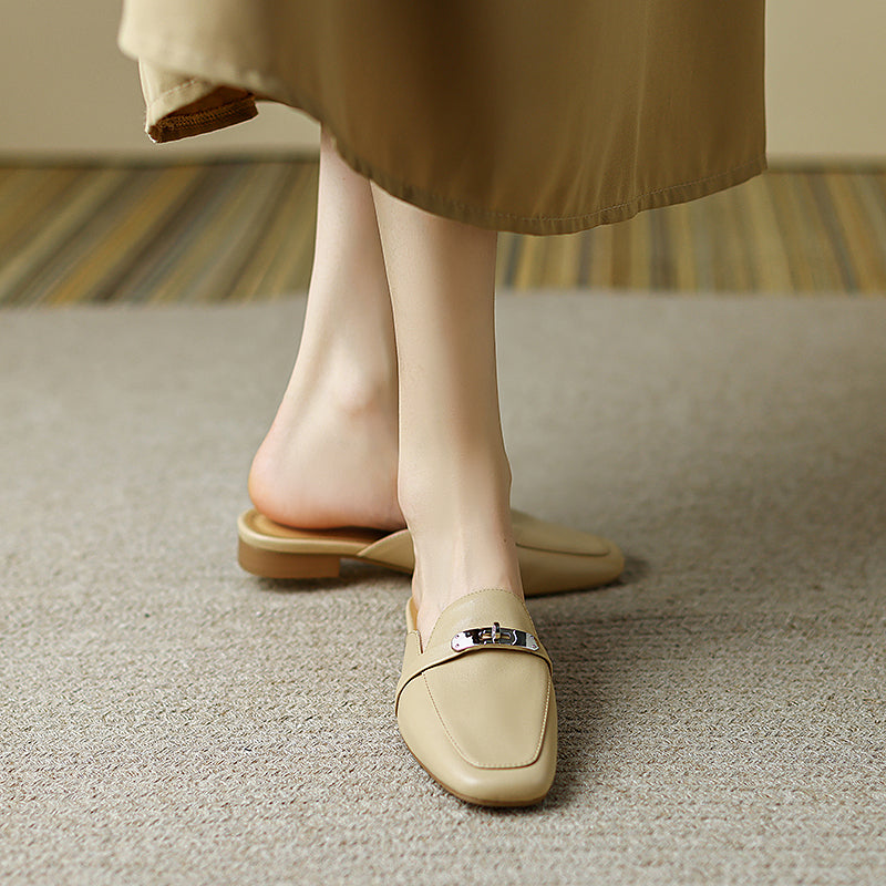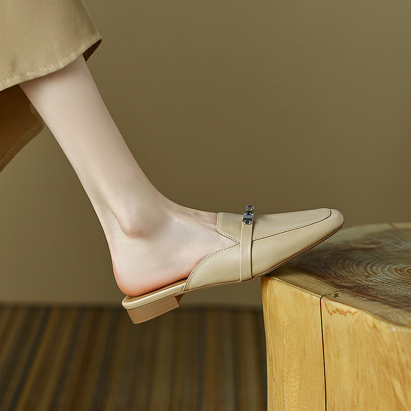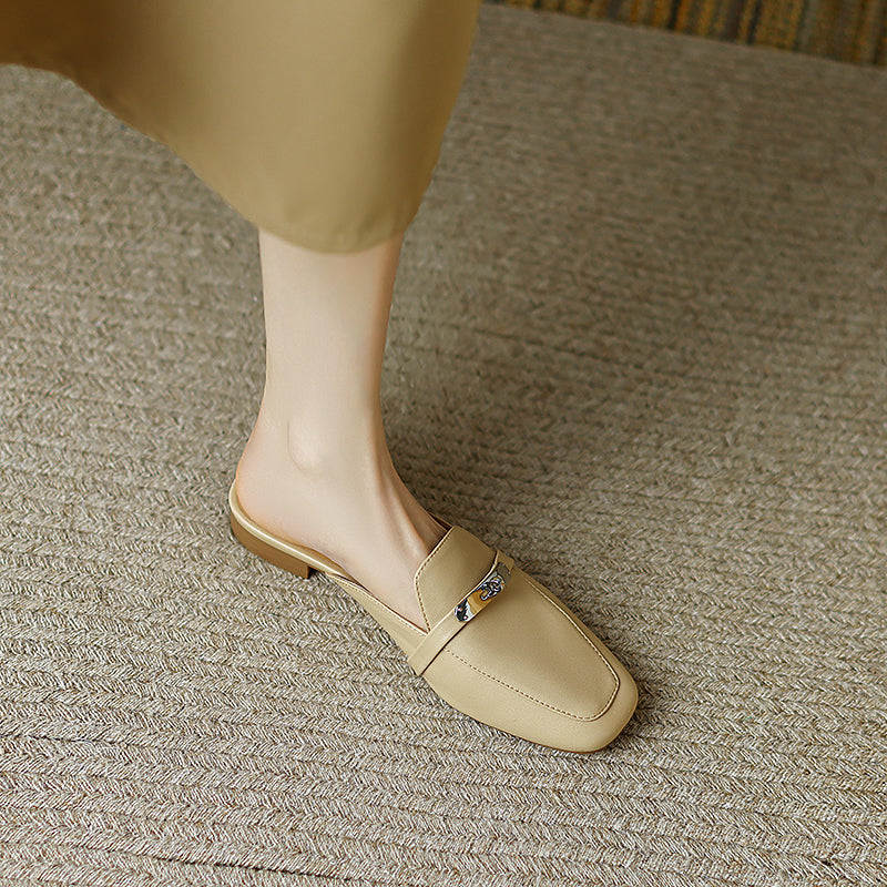 Loafer mules have been popular in recent years. These nude mules are classic and they go with everything. Easily slip on these leather mules for running errands or just a walk ouside.