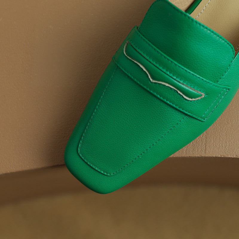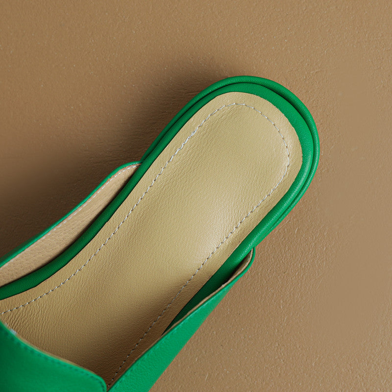 Green mules have been many girls' next purchase choice this year. With the closed-toe feature. you can even wear these leather mules to casual work occasions when you dress up appropriately.