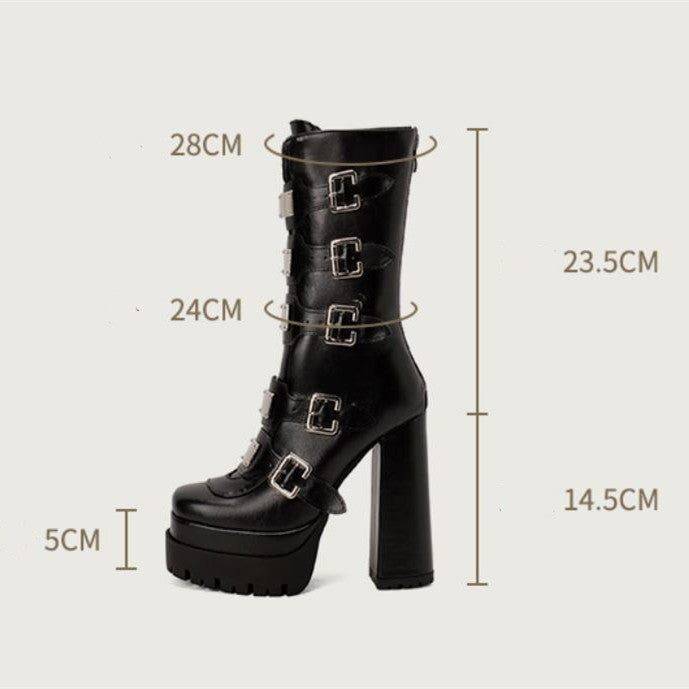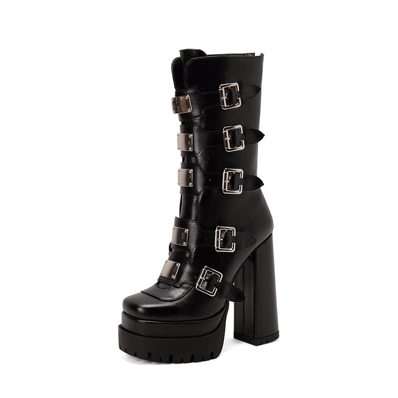 Looking for a unique and stylish way to add some edge to your wardrobe? Check out our gothic platform boots! These beautiful black boots are perfect for dressing up or down. and they really make a statement. They feature buckles for a dramatic look. and they're calf-height for added style. Plus. they have a chunky platform heel that provides both comfort and style.