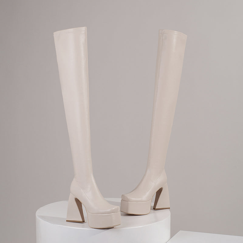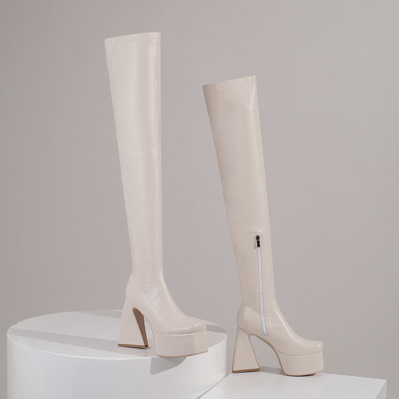 Looking for a sleek and sexy pair of boots that will make heads turn? Look no further than our white thigh high boots!