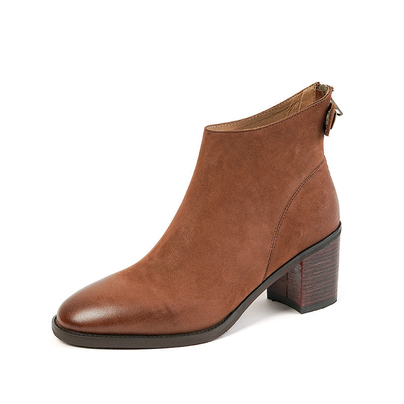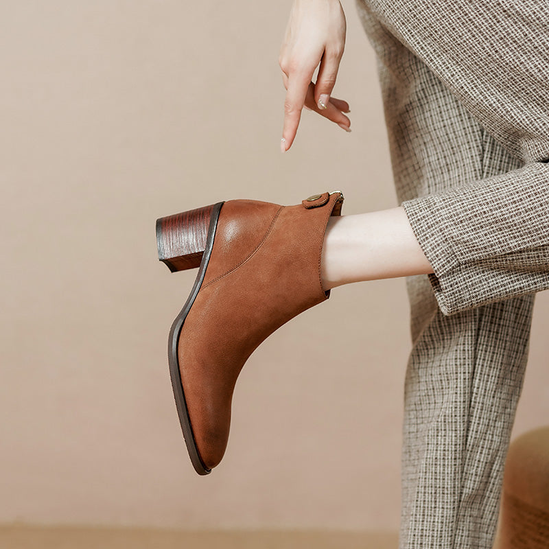 These cognac booties are the perfect addition to your fall wardrobe! Made from high-quality leather. they're built to last and will only look better with age. The low heel makes them comfortable to wear all day. while the zip closure makes them easy to get on and off.