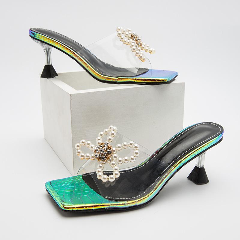 Faux Pearl Decor Heeled Sandals