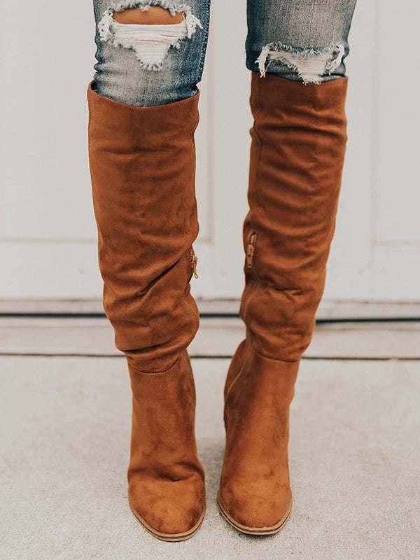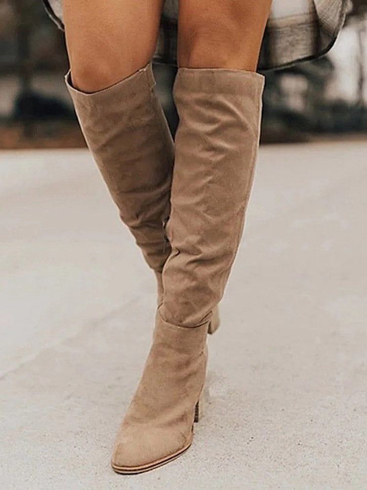 Faux Suede Chunky Heel Boots