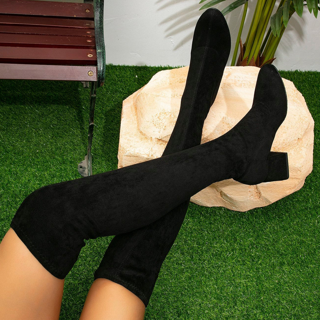 Faux Suede Over-the-Knee Chunky Heel Stretch Boots