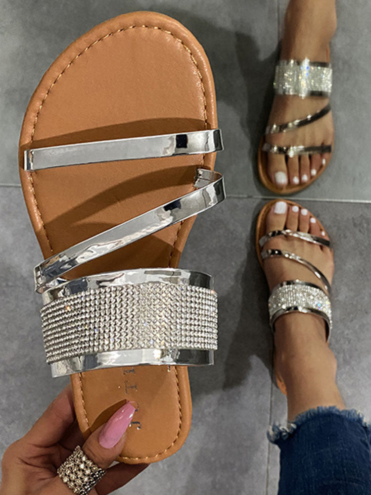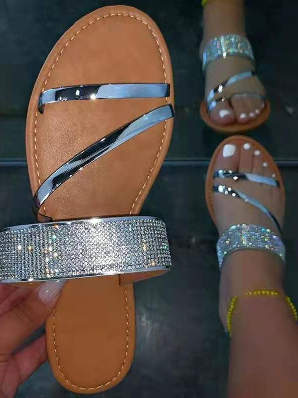 Flat Heel Rhinestone Casual Sandals