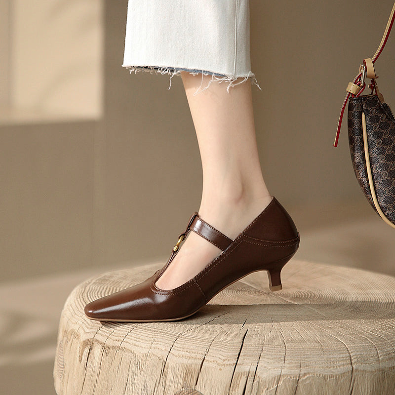 The brown kitten heel provides delicate touch. while the t strap adds a touch of glamour. Whether you're dressing up for a special occasion or simply want to add a touch of elegance to your everyday look. these shoes are perfect for you!