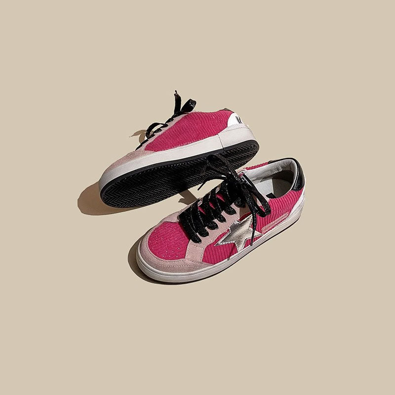 Into style? Who isn't! These shoes scream 'casual chic' with a hit of old-fashioned charm. Rocking a mixed pattern and popping in pink. you won't just blend in. you'll stand out! Perfect for spring and fall outings. these shoes have you covered. girl.