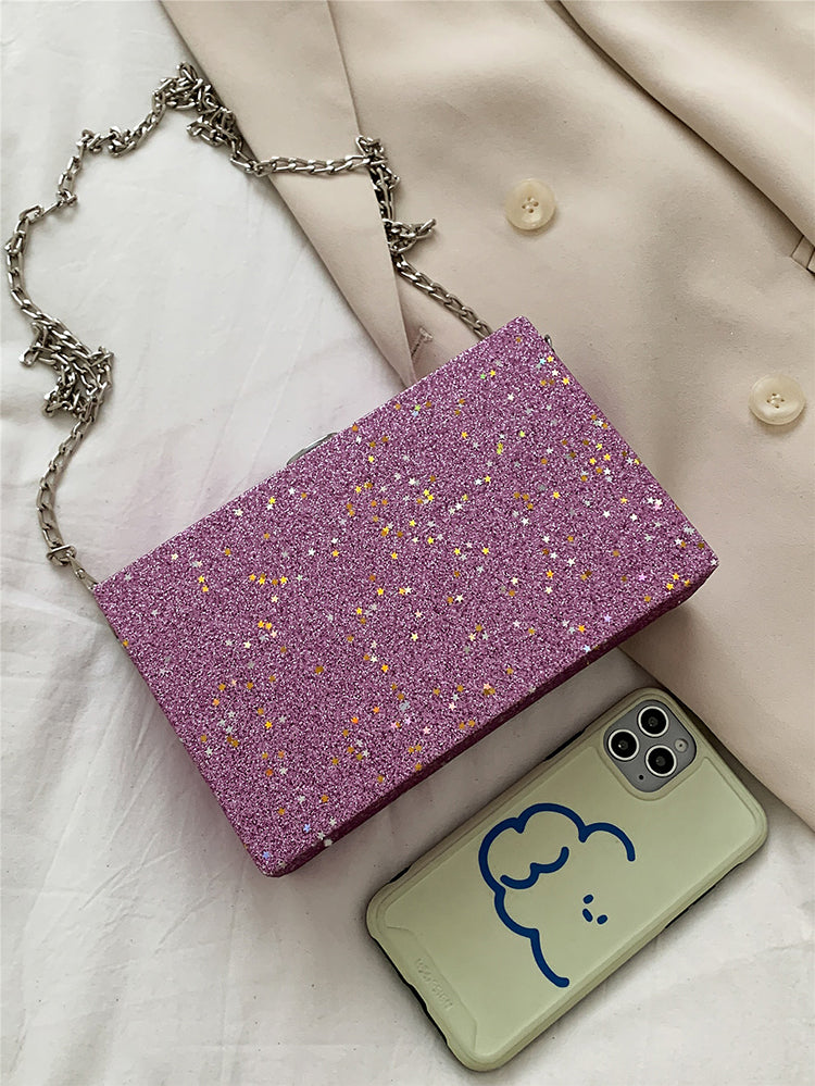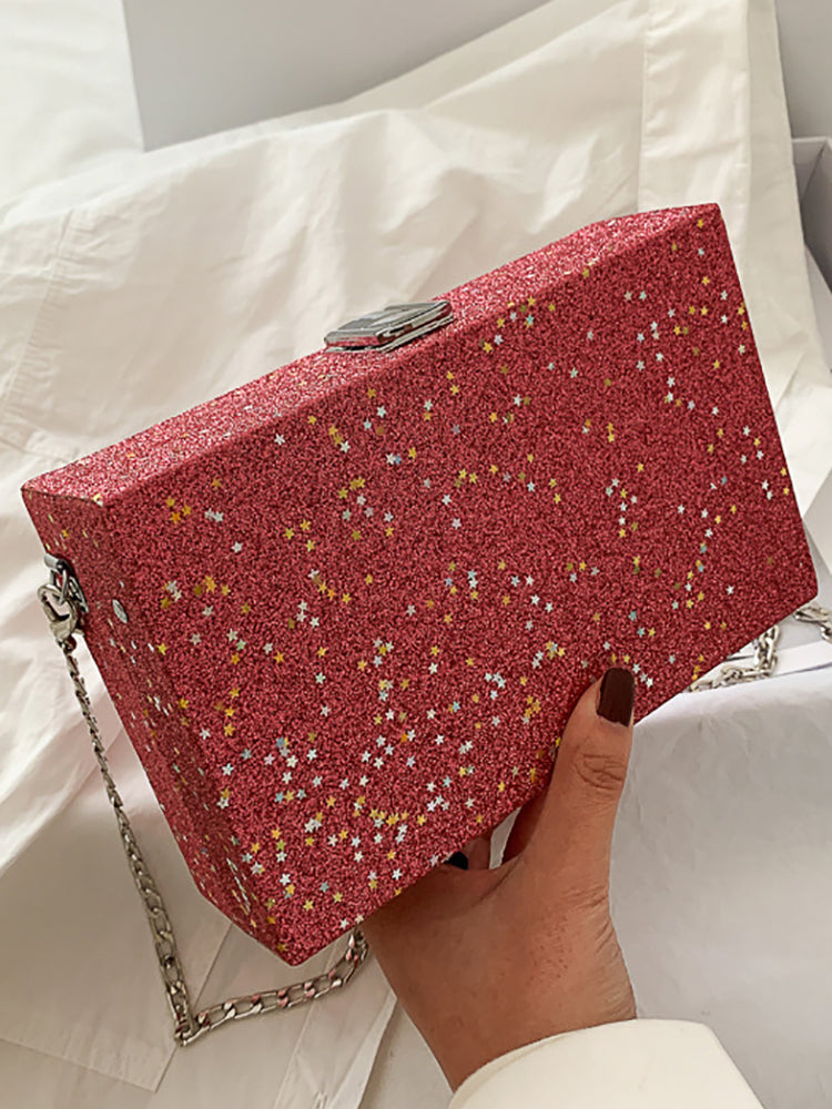 Glitter Decor Chain Box Bag